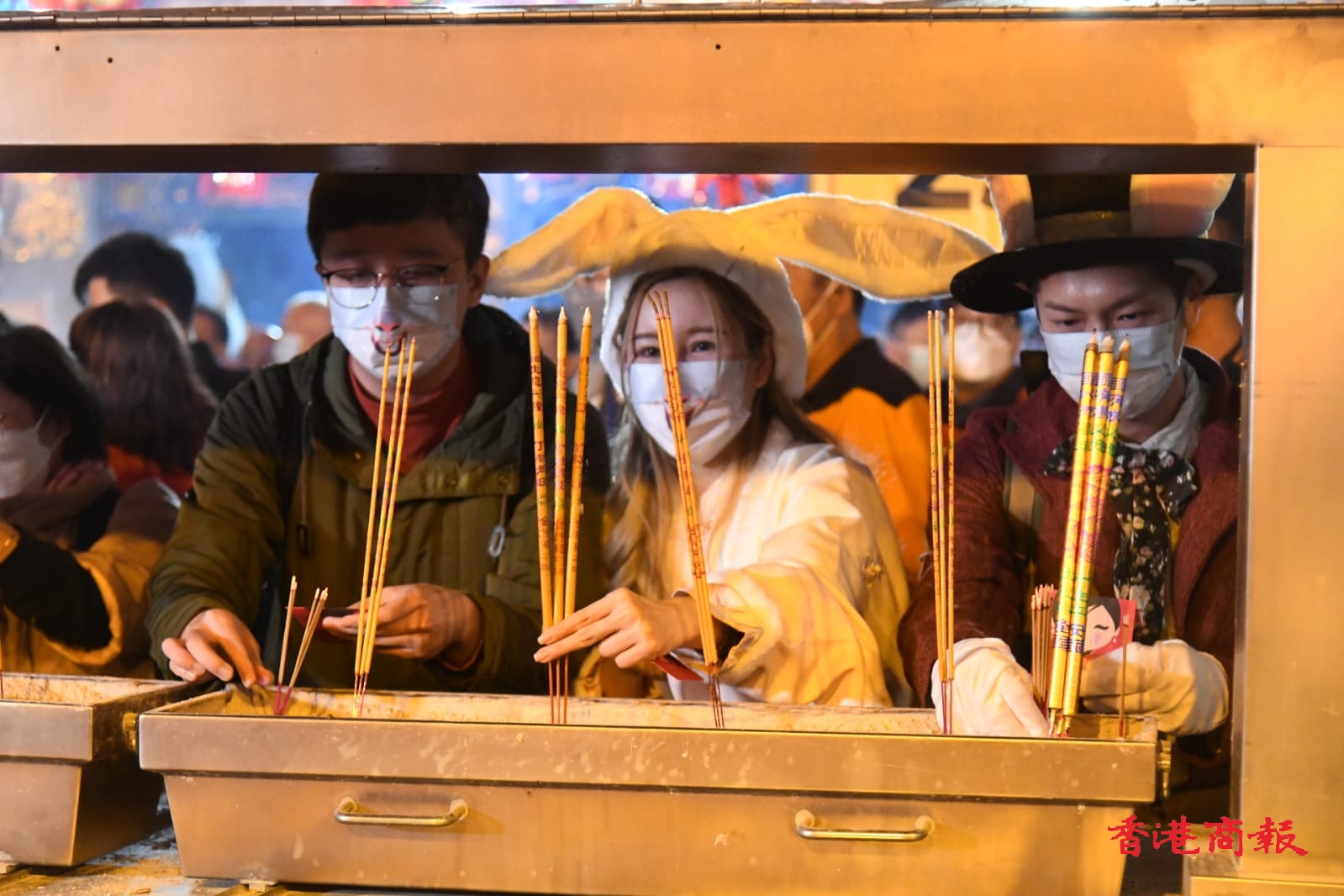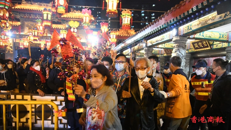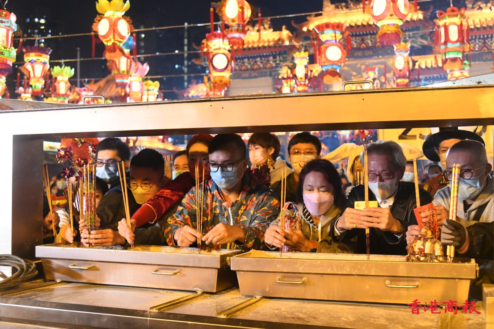 因應疫情而暫停兩年的黃大仙廟頭炷香活動,今年年三十晩正式復辦,晚上8時許,已有善信在廟外排起人龍。到晚上9時黃大仙廟開始分批讓善信參拜。頭注香將在子時(晚上11時)開始,另一次頭注香則在凌晨12點。