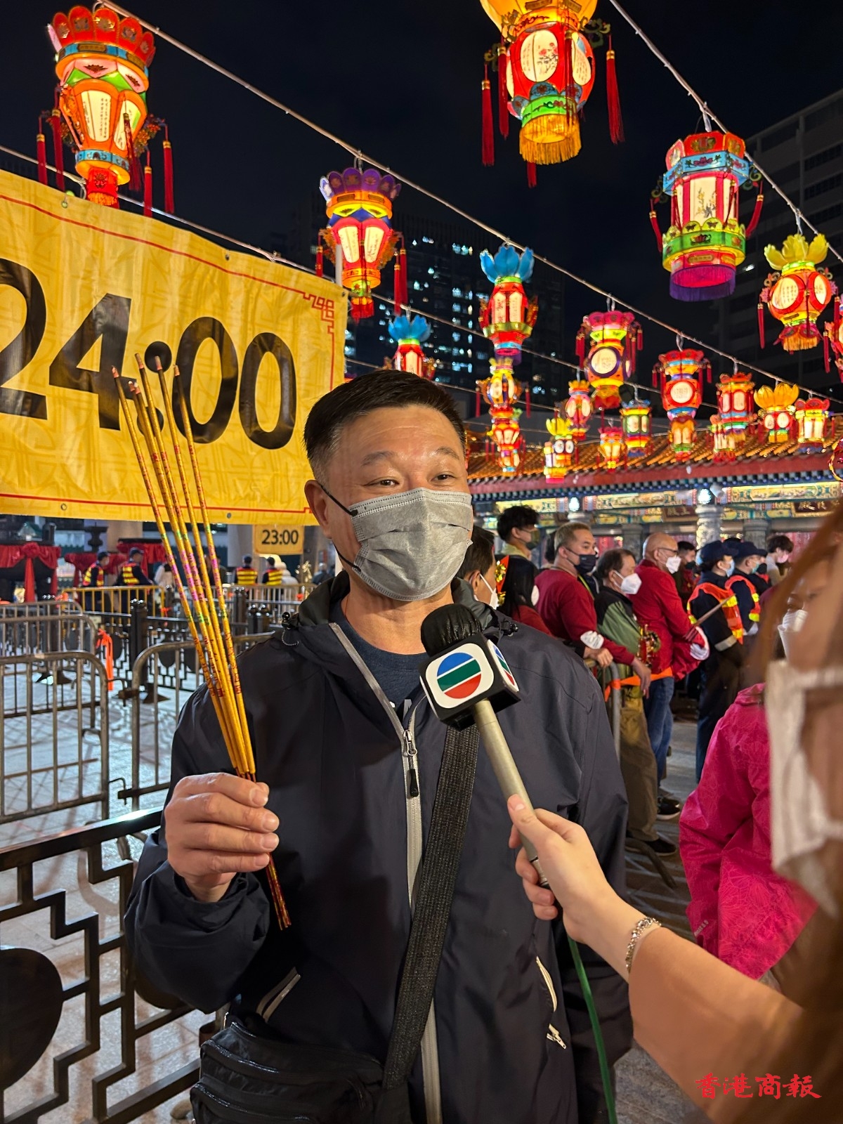 陳先生表示,過去多都來堅持年三十晚來上頭注香,後來因疫情而停辦,知道今年復辦很開心,希望香港人都身體健康。