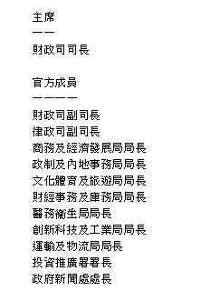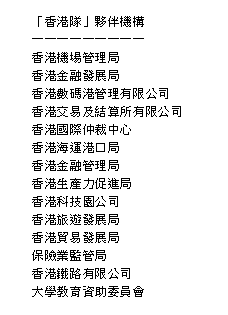 專責小組官方成員則包括多名司局長,而機管局、金融管理局、旅發局及大學教資會等成為「香港隊」夥伴機構。