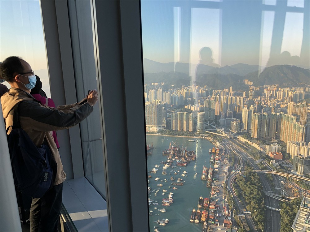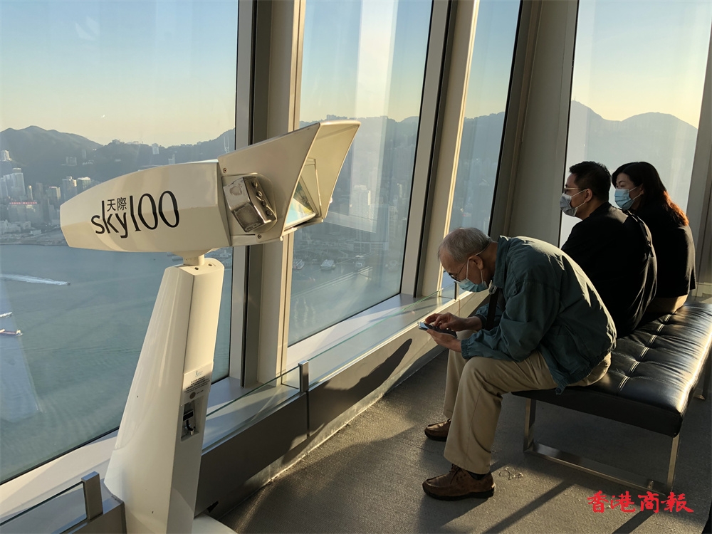 位於西九龍柯士甸道西1號環球貿易廣場的第100層的天際100香港觀景台,是位於九龍區最高的觀景台,位處「城市之巔」的天際100是香港位處最高點的室內觀景台,面積約三萬平方呎,遊客可以在海拔393米高的觀景位置環視維港兩岸景色,最遠可以眺望澳門。觀景台設有多媒體設備,並不時舉辦專題展覽,讓訪客了解香港的發展及風土人情。(俊文攝)