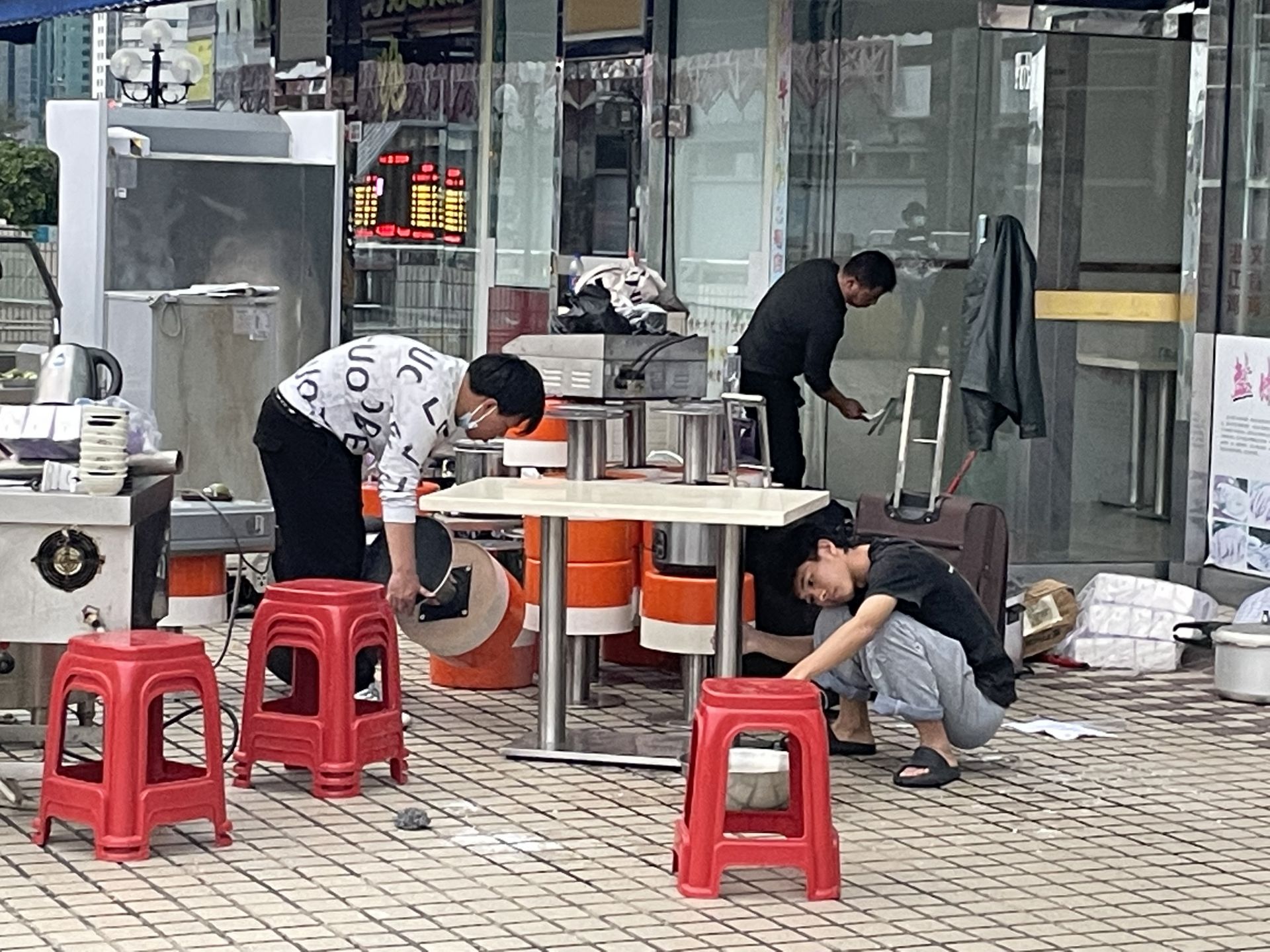 2月3日下午,記者來到羅湖商業城一樓看到,商場外較為冷清,但商場內各商舖卻不清閒。阿葉牛肉館負責人葉女士和同事們在餐館的里里外外忙碌着,有的在擦桌子,有的在拖地,還有的在洗餐具……在餐館外,桌椅、餐具、電器等物品擺了一地。葉女士說,羅湖口岸封閉3年,餐館也陸續停業了3年。2月3日看到羅湖口岸即將恢復通關的消息,她立即就和同事們趕回來「洗」迎通關、準備開業,迎接旅客的到來。