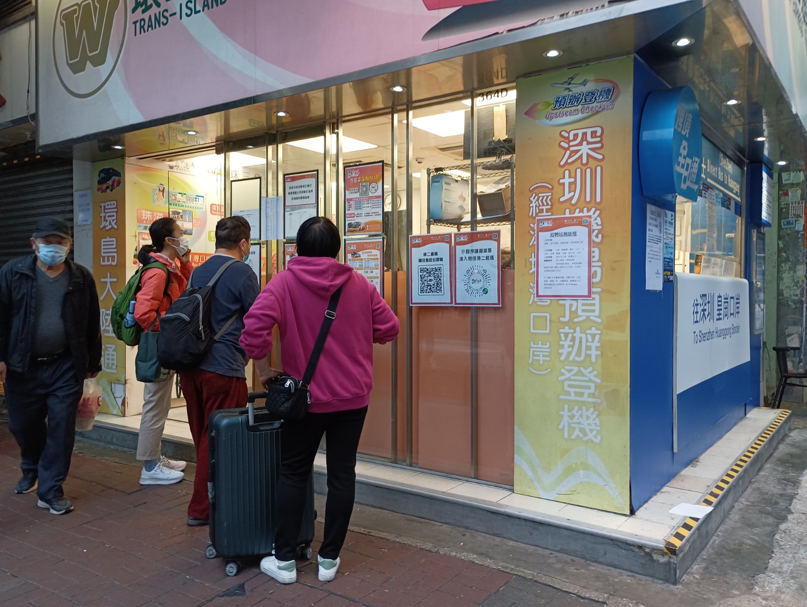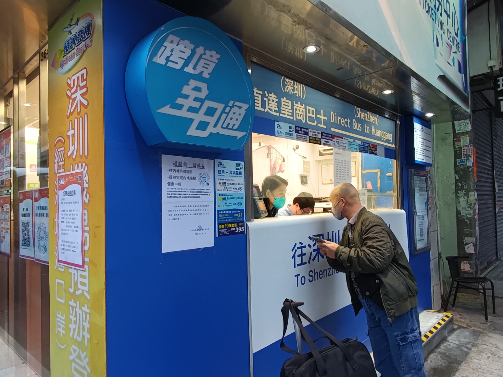 周一早上近7時許,有數名市民在直通巴士站查詢及購票,從事「三行」的彭先生表示對恢復全面通關感到高興,「今次唔使咁麻煩,大家可以自由自在、隨時隨意返去。」他指,今次回去主要探親,已經兩年沒有回去了,「現在免核酸免預約,可以多點返去。」(記者馮煒強 攝影馮瀚文)