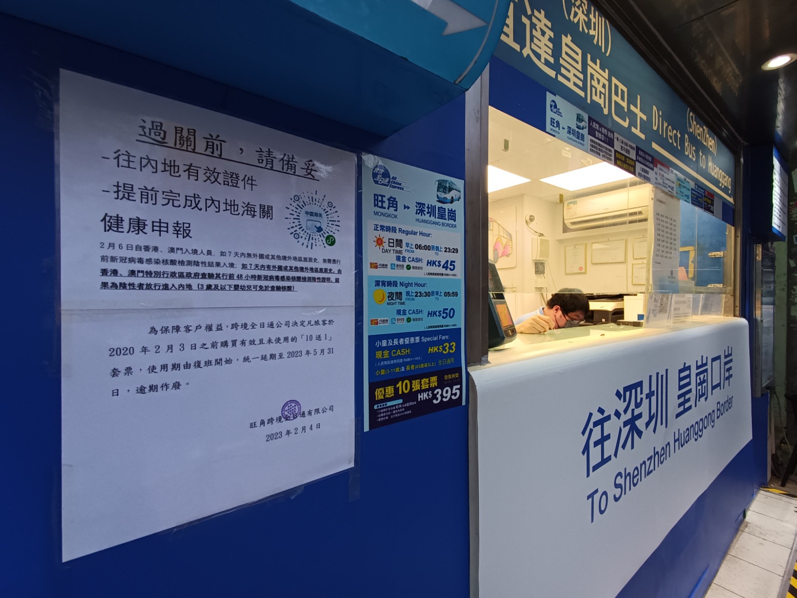 皇崗口岸周一(6日)零時恢復通關,由旺角開往皇崗口岸的直通巴直周日(5日)晚上11時45分有首班車開出,每30分鐘一班車。