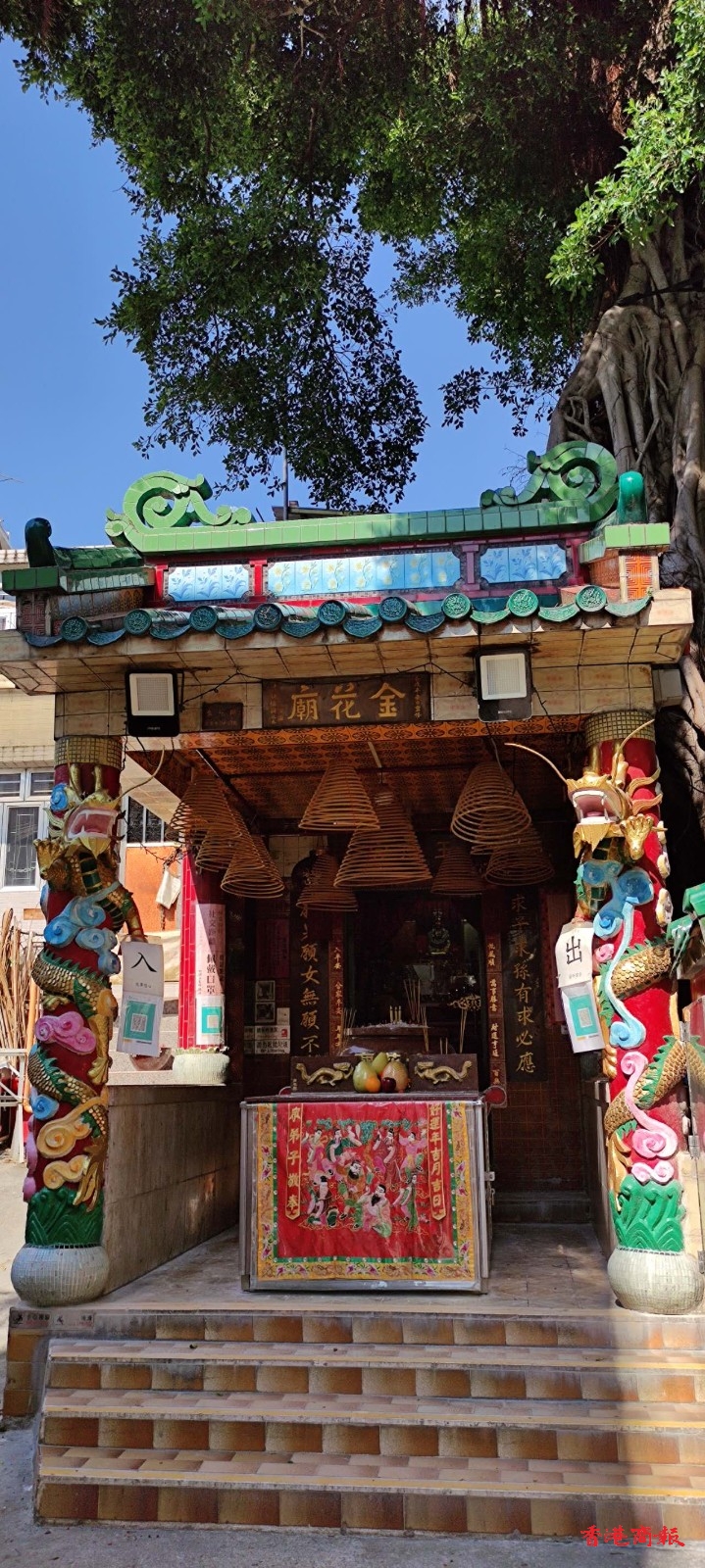 坪洲金花聖母善信來自香港及世界各地,從廟前的一副對聯便可知曉。對聯寫道:「求子求孫有求必應,願男願女無願不成」,是若干年前由善信送出。每年農曆四月十七日金花誕,坪洲金花廟歡迎所有善信抽空到來參拜及祈福,從而得到金花聖母的庇佑。前特首董建華曾先後在金花廟貴賓冊上簽各,其他前來參拜或參觀過的名人包括前兩局議員周梁淑怡、太平紳土林偉強及藝人汪明荃、曹達華、林蛟等。(蔡啟文攝)