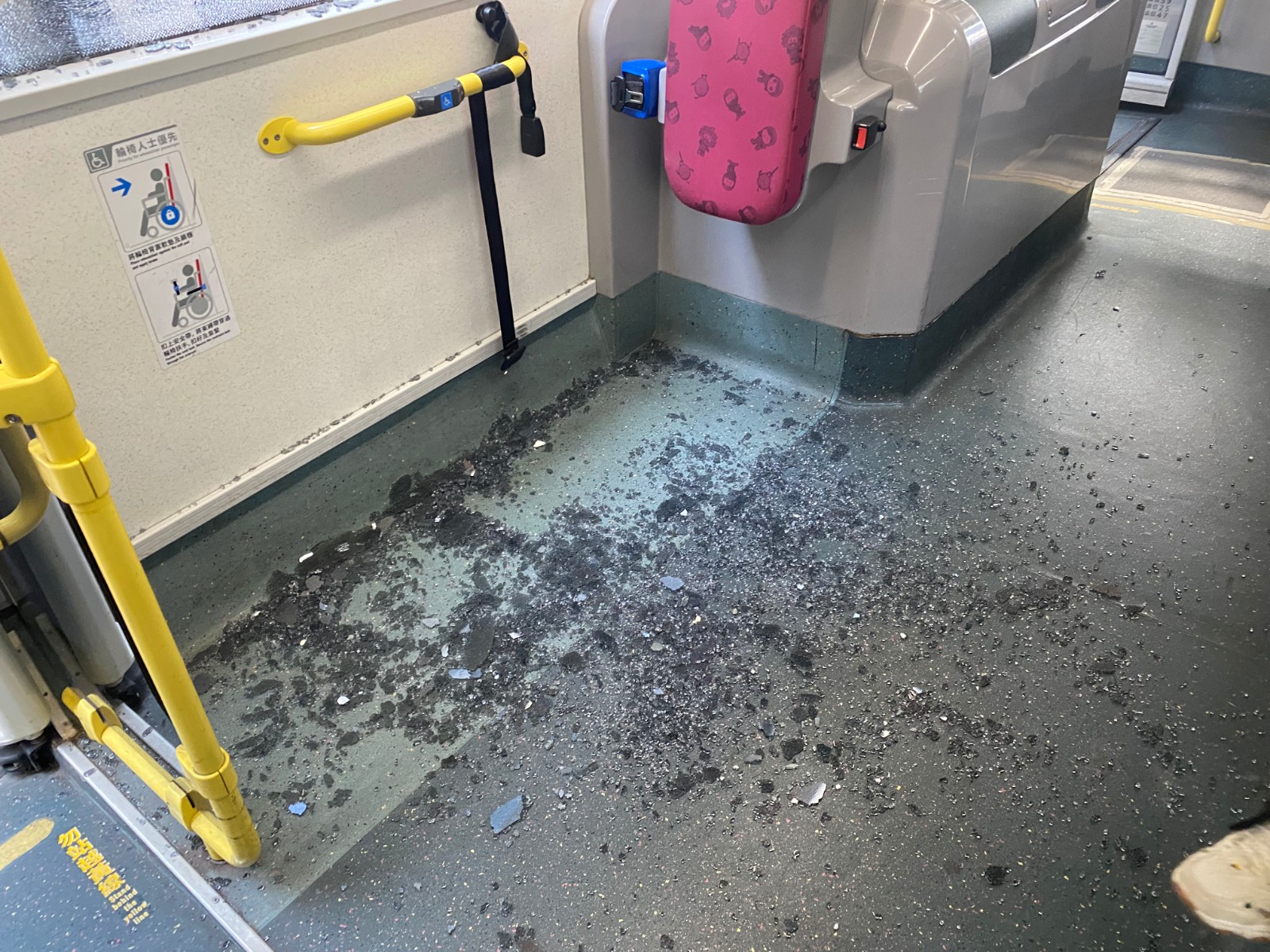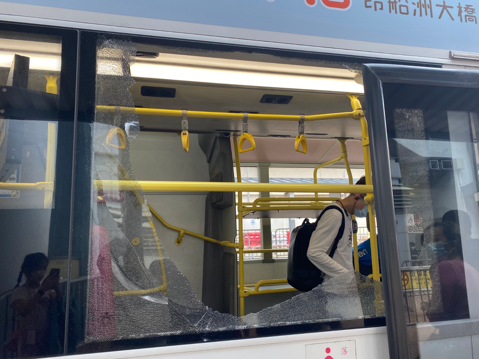 全面通關之後,大批香港市民趁着周末到深圳遊玩或者看望朋友。今日(18日)在通往落馬州口岸的B1巴士上,人頭涌涌,座無虛席,大部分人都需要站立,人潮逼爆車廂。在新田運輸交匯處附近,巴士下層靠近車門的車窗突然爆裂,玻璃灑落一地,幸好無人受傷,乘客需要下車改乘下一趟車。有人笑說,北上人潮太洶湧了,連車窗玻璃也被逼爆了。(記者 木子)