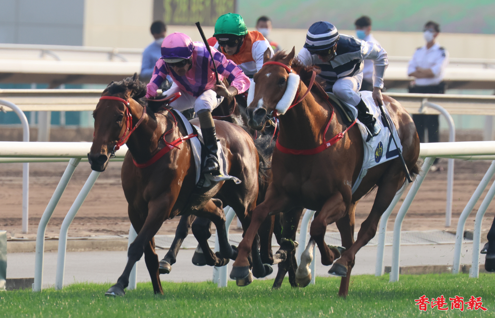 今日(19日)沙田馬場舉行TVB賽馬日,全日重頭戲落在第八場二班2000米的TVB盃身上,蔡約翰訓練的「健康快駒」在布文胯下,末段衝刺有勁,最終後上擊敗「勇猛神駒」、「表之五知」,勇奪冠軍。