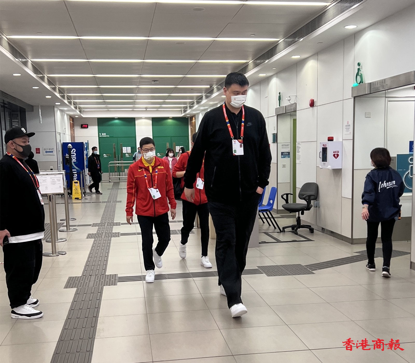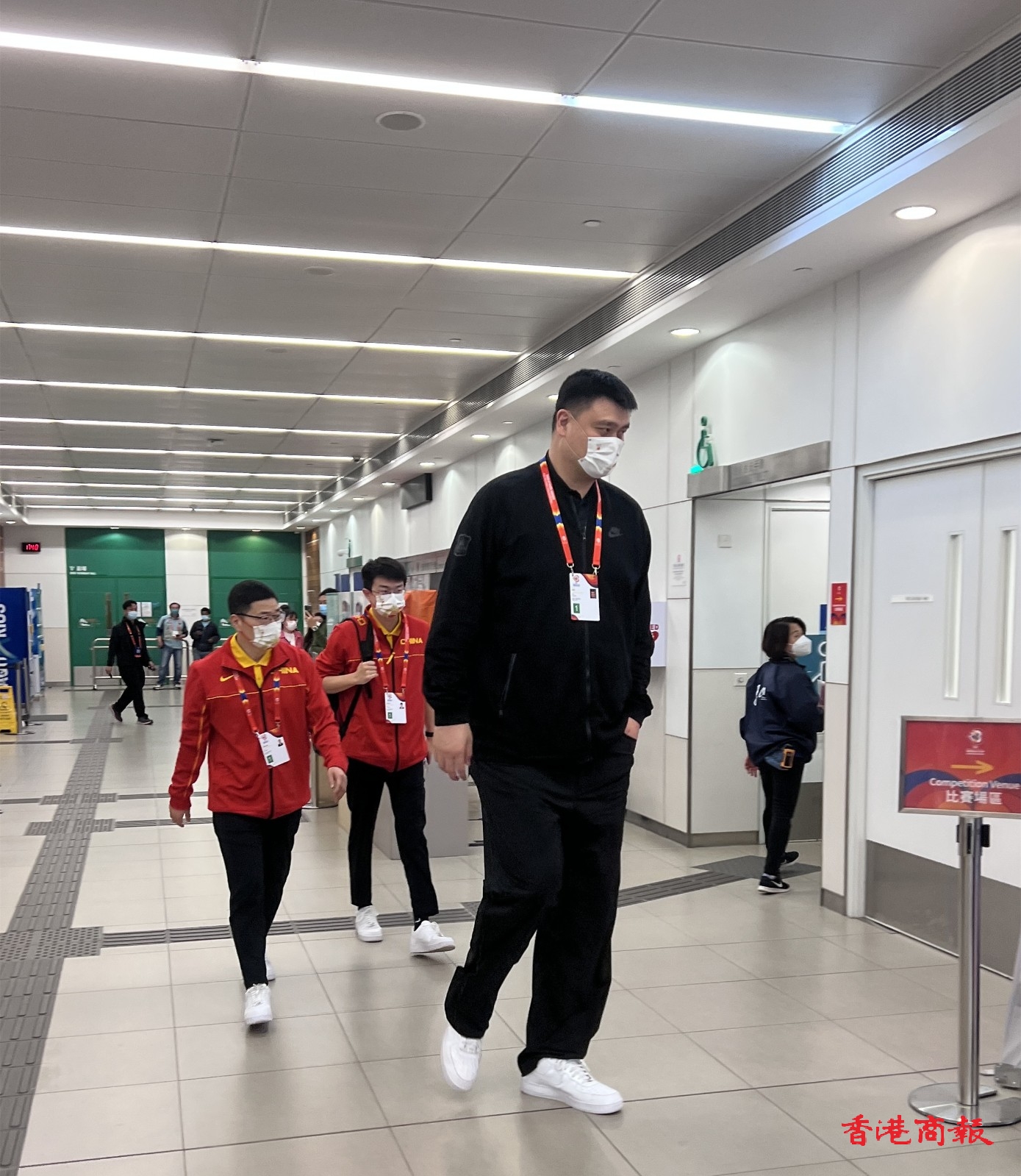 今晚上7時20分,中國將對陣對哈薩克斯坦隊,領隊姚明現身荃灣體育館。姚明經過時,現場觀眾紛紛感嘆「好高喔」。(記者 岳昕)