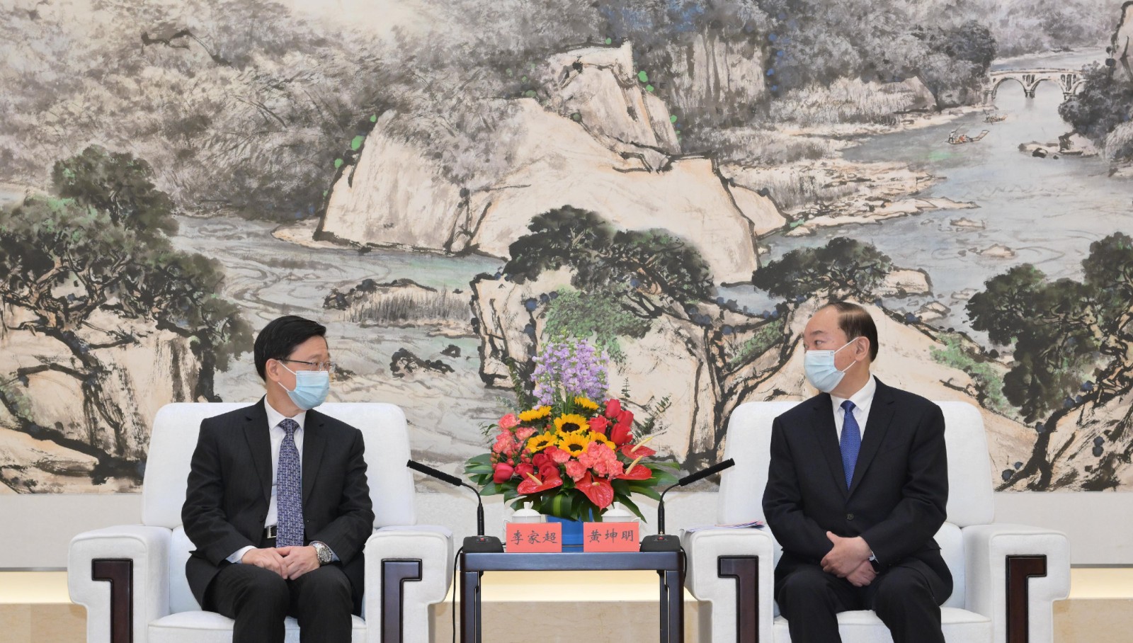 早上,李家超一行由香港西九龍站乘坐高鐵抵達廣州,隨即與廣東省委書記黃坤明先生和廣東省委副書記、省長王偉中先生會面。粵港同意將在近期舉行下一輪粵港合作聯席會議,進一步深化粵港合作。