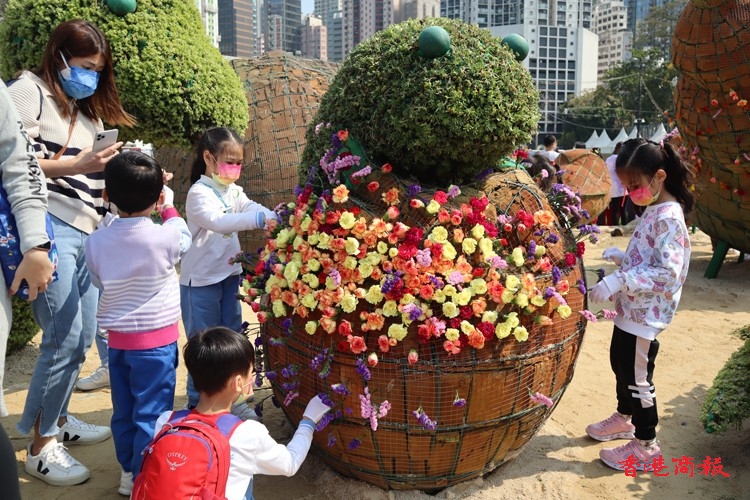 停辦了三年的香港花卉展覽,將於下月十日至十九日舉行,今天(25日)超過一千名來自三十二間學校的中、小和幼稚園學生,化作小小園藝師,參與在維多利亞公園舉行的「賽馬會學童鑲嵌花壇」活動,協助鑲嵌大型花壇「仲夏普騰」。