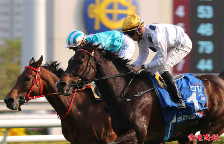 今日(26日)沙田馬場重頭戲落在第七場國際一級賽2000米香港金盃身上,兩屆馬王「金鎗六十」在老拍檔何澤堯胯下,直路施展凌厲後勁,終點前趕過今屆香港盃盟主「浪漫勇士」,勇奪冠軍,繼董事盃之後,贏出三冠大賽次關。