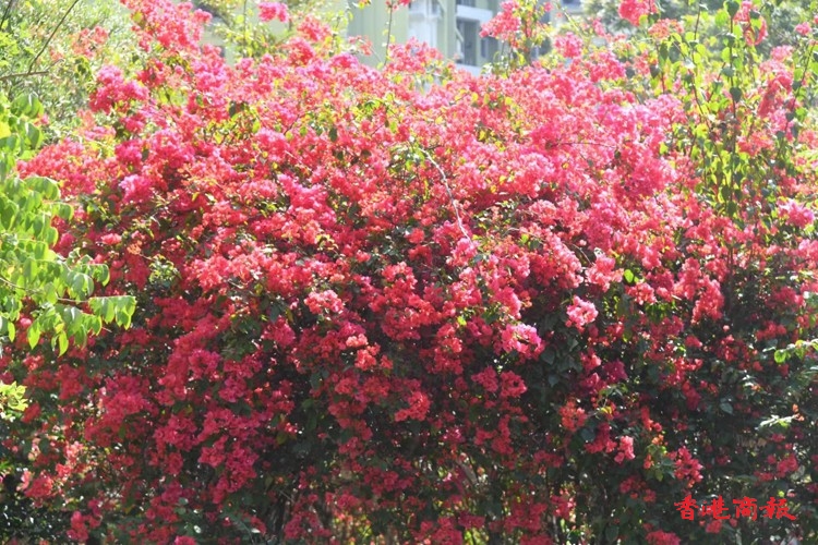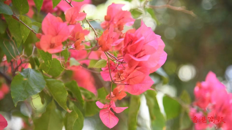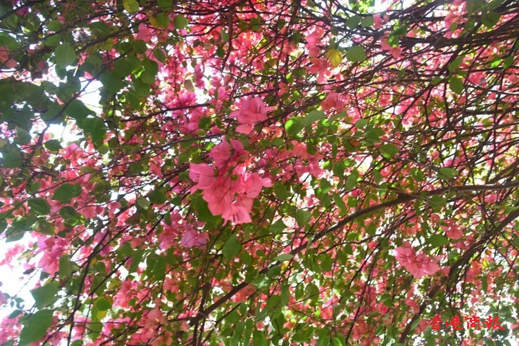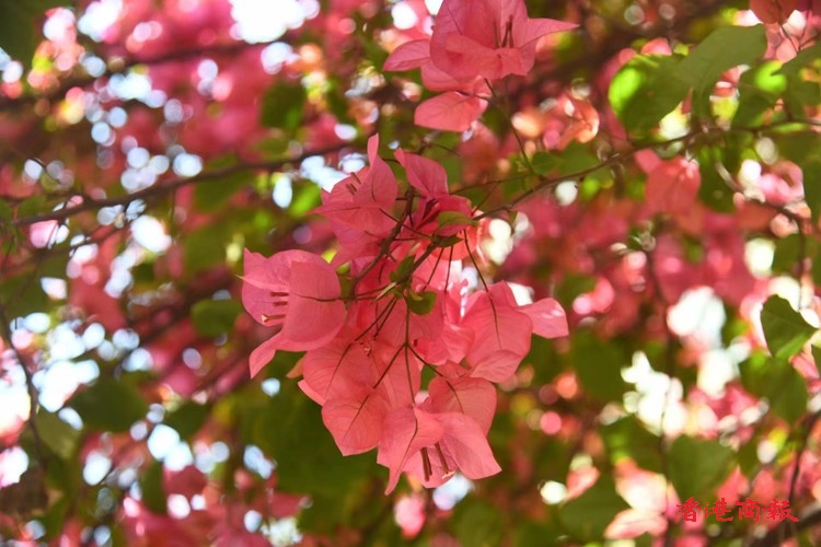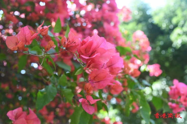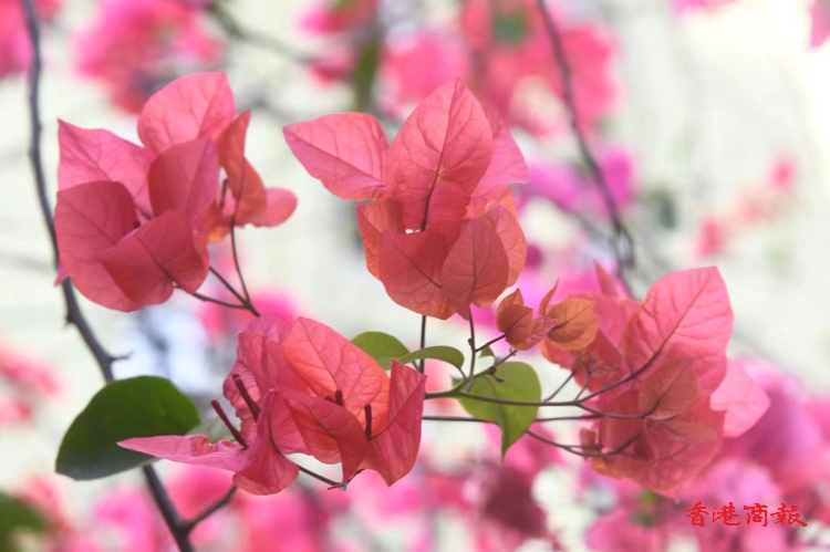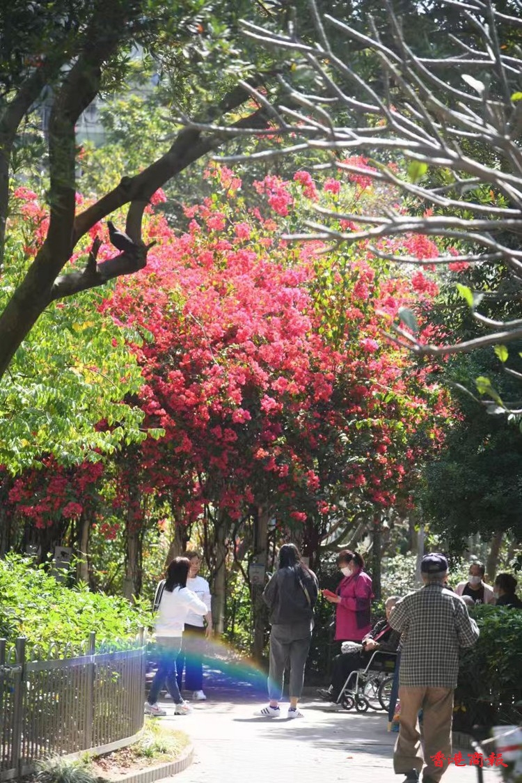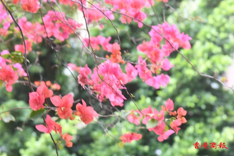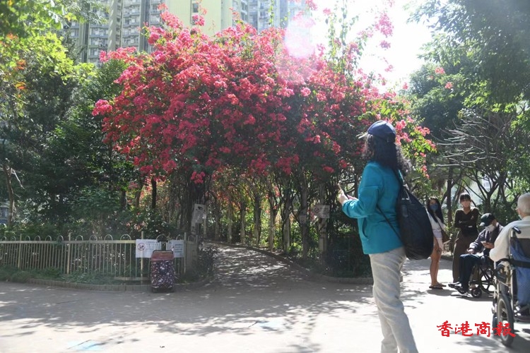 春天百花齊放,香港各地都迎接各式花卉盛開,其中一種簕杜鵑花在路傍及公園都有大量種植。在長沙灣元洲邨就有一條全港獨有的花花隧道,全長30米,近年每逢3至4月都會吸引大批影友到來拍攝,更有不少愛侶來拍攝婚紗照,看着盛放的簕杜鵑花,心情自然好。今年花花隧道以前面最茂盛,在陽光影照下透出紅光,美不勝收。(記者 蔡啟文攝)