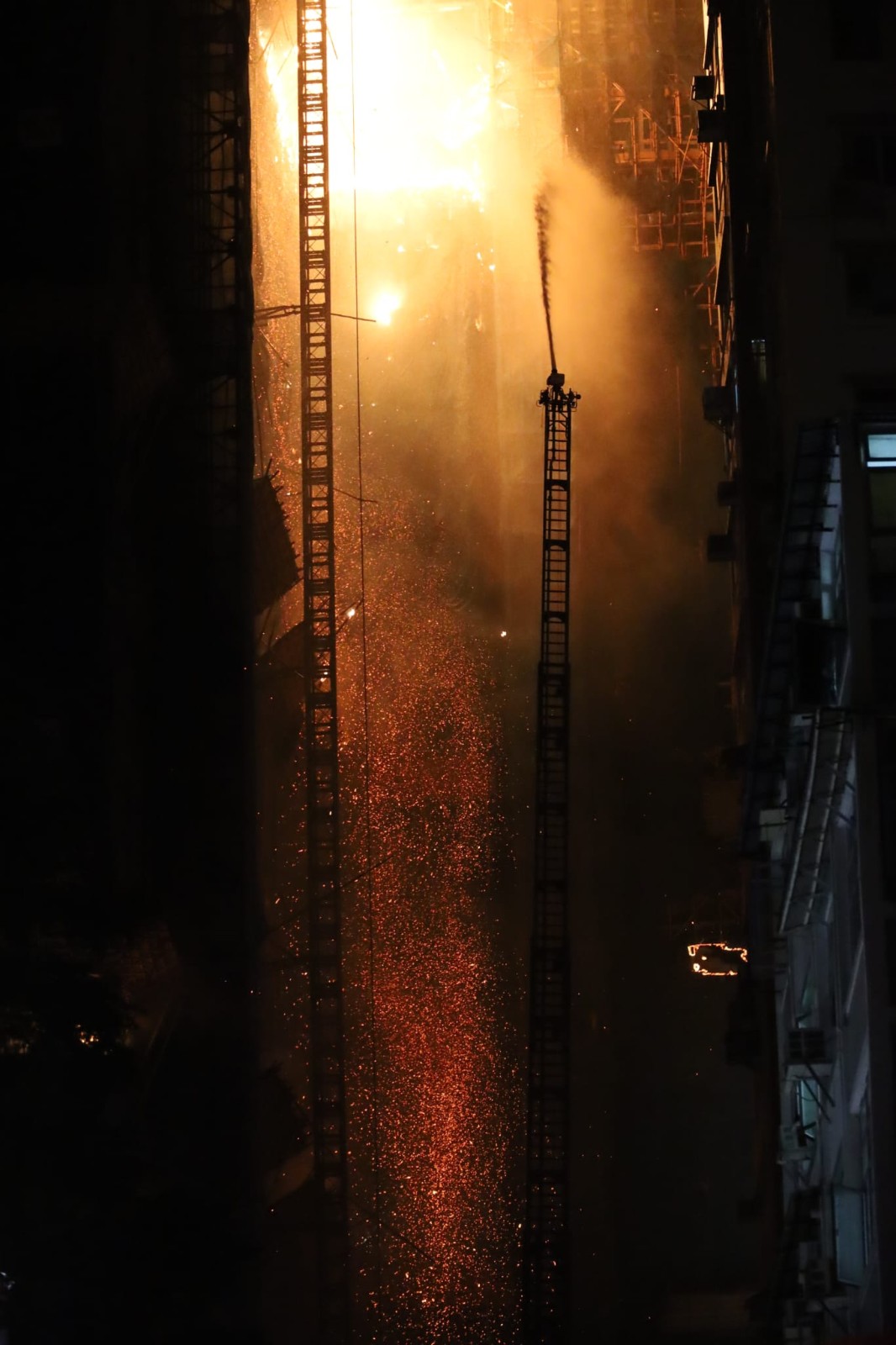 警方及消防今早(3日)交待尖沙咀中間道地盤四級火警。消防處副消防總長姜世明表示,昨晚(2日)11時11分接報,指在尖沙咀中間道11號一個建築中的地盤起火,消防員在5分鐘後到場,發現現場是一個面積龐大的地盤,約60米乘80米,樓高48層,同時發現火警涉及多個樓層,並波及外牆的建築棚架和物料,因預計需要大量人手、資源和車輛撲救,遂在11時37分將火警升為三級,大批消防員迅速展開滅火行動,由於大廈火警仍然有上下蔓延跡象,加上有強風,將地盤較高位置的火屑吹向不同方向,附近五幢大廈有被波風險,包括一間酒店。起火大廈在建築中大廈內消防裝置及設備並未投入使用,工地內只有臨時消防設備,因此估計需要大量人手將輸水的工具例如重型的水泵帶上較高樓層,至凌晨1時46分將火升為四級。