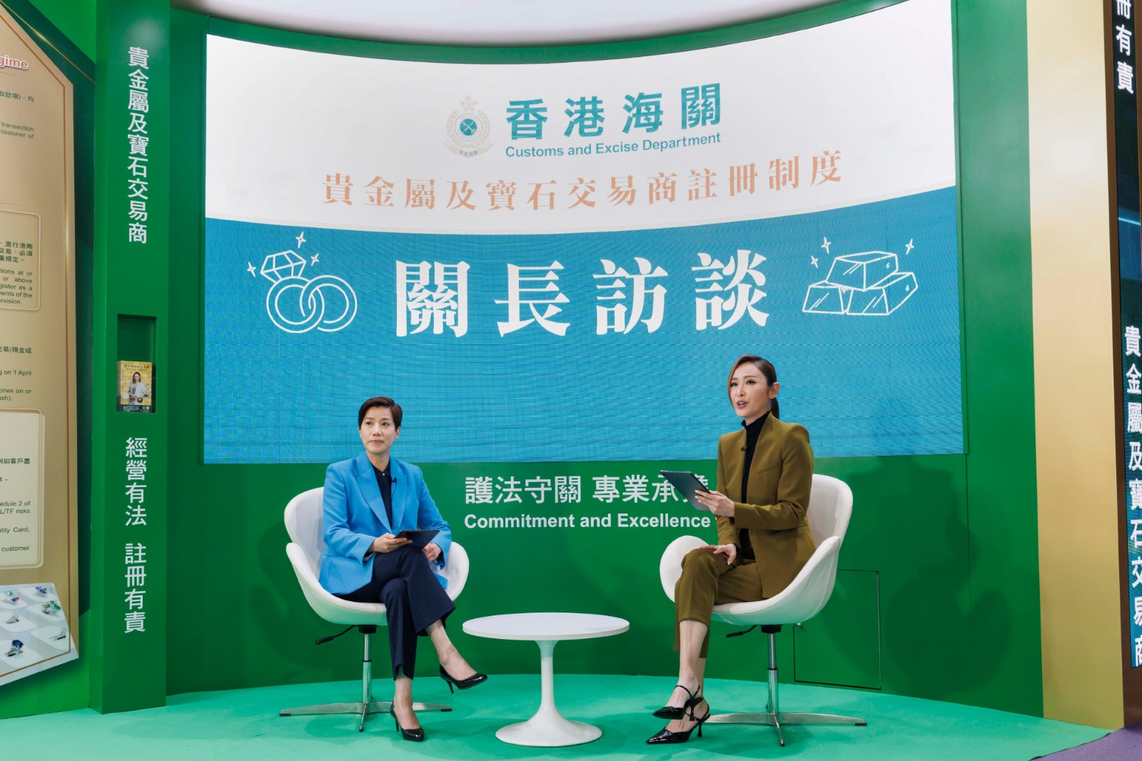 海關關長何珮珊今日(3日)參與香港海關於珠寶展舉行的宣傳活動,與知名藝人陳貝兒進行對談環節,介紹有關規管制度,為整個推廣活動打響頭炮。何珮珊表示,貴金屬及寶石交易商規管制度的實施,充分顯示香港打擊洗錢和恐怖分子資金籌集的堅定決心,並有效維護香港國際金融中心的聲譽。