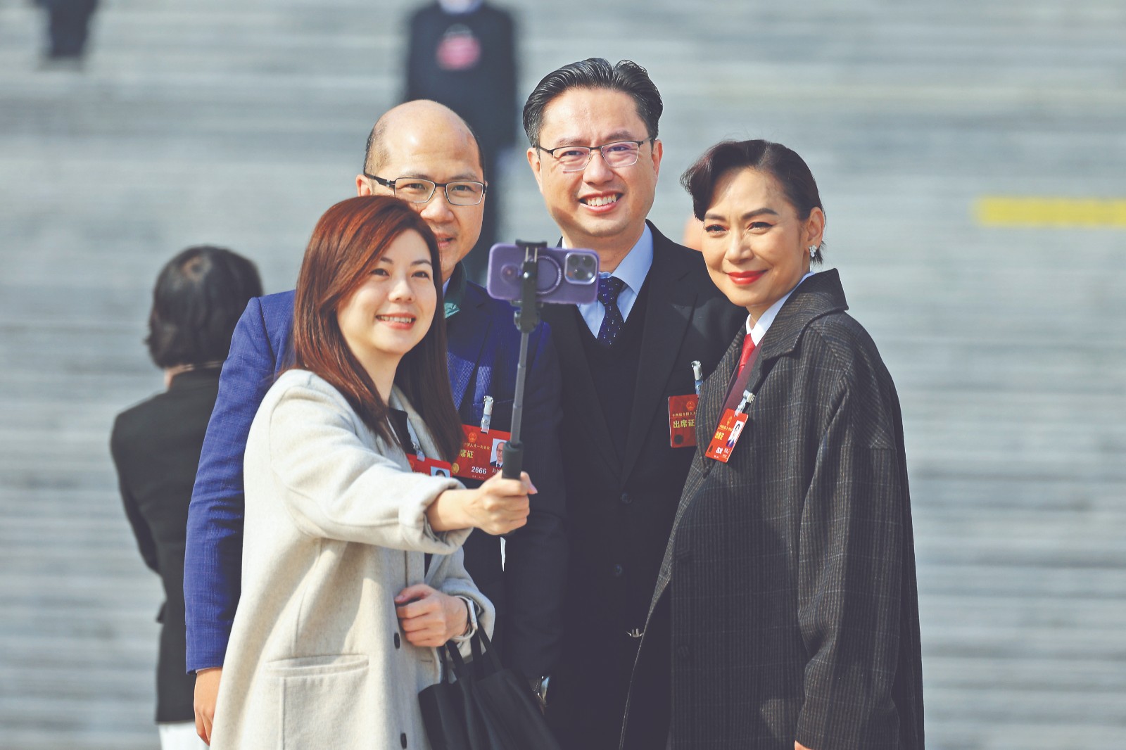 港區全國人大代表們在北京人民大會堂外合影。 中通社