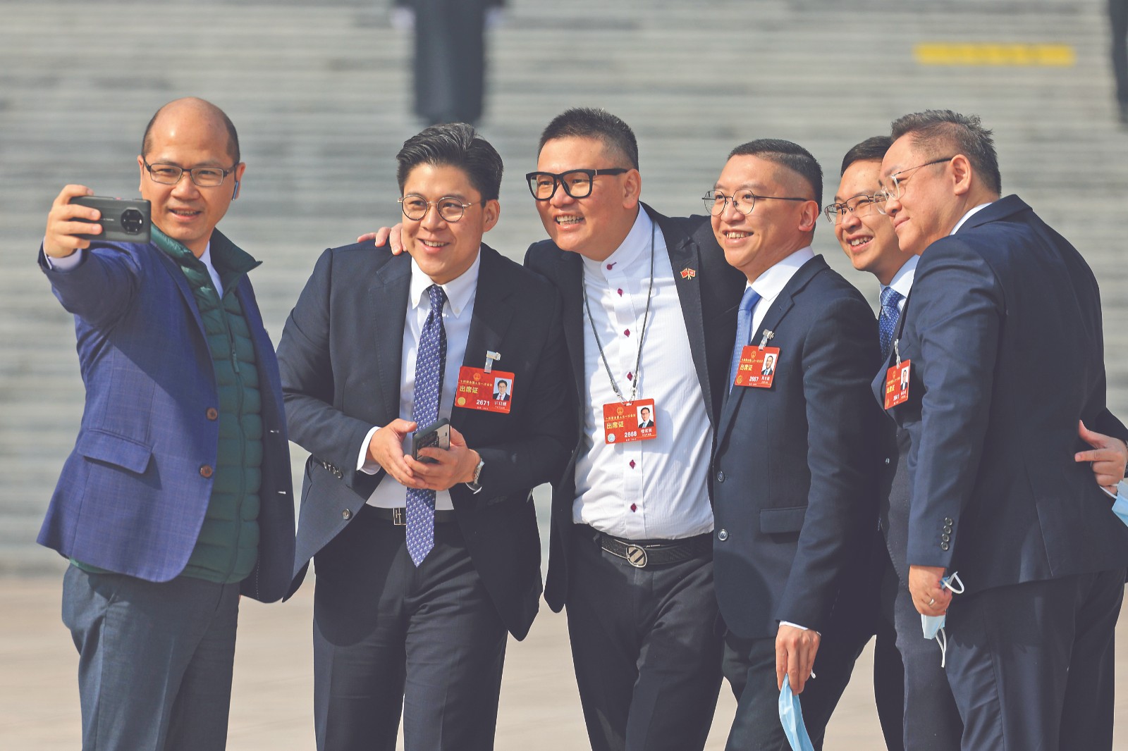 頂圖:港區全國人大代表在人民大會堂外合影。 港區人大代表陳勇供圖