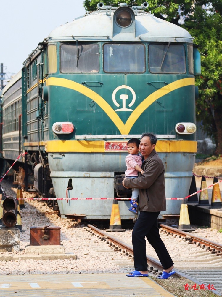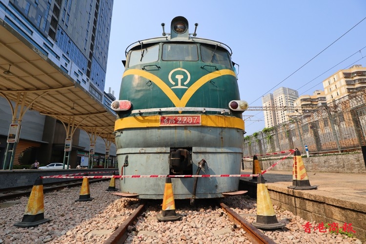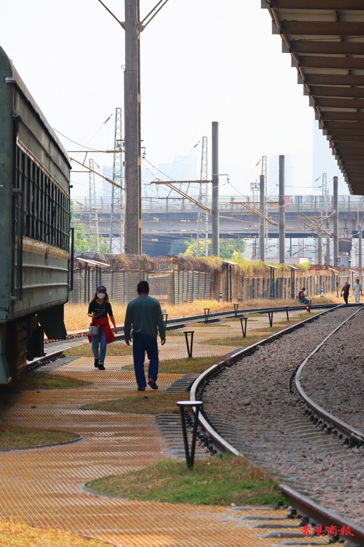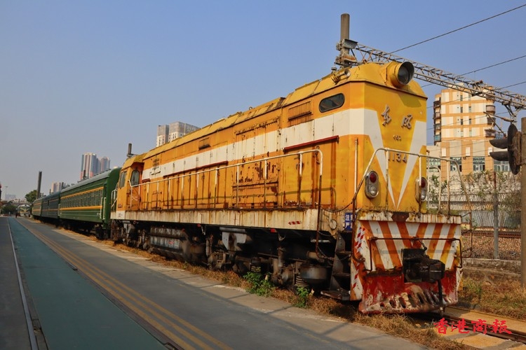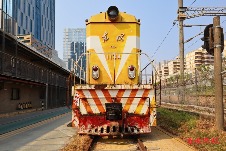 現時車站內停放了兩個已退役停駛的列車火車頭和多卡車廂,那看似不起眼的綠皮火車,名牌上寫着「東風2207」的標誌可是大有來頭,由大連機車車輛廠於1967年所製造,中國第一款定製批量生產的東風型柴油機車,亦為當時廣九鐵路運輸的主力,據聞全國現存數量不超過五台,可見是多麼的彌足珍貴。另輛黃加橘紅色的火車頭為東風DF5-1134型,由四方機車車輛廠於1992年所製造,與2207車型同為清水河調度的主力車輛。(馮瀚文攝)