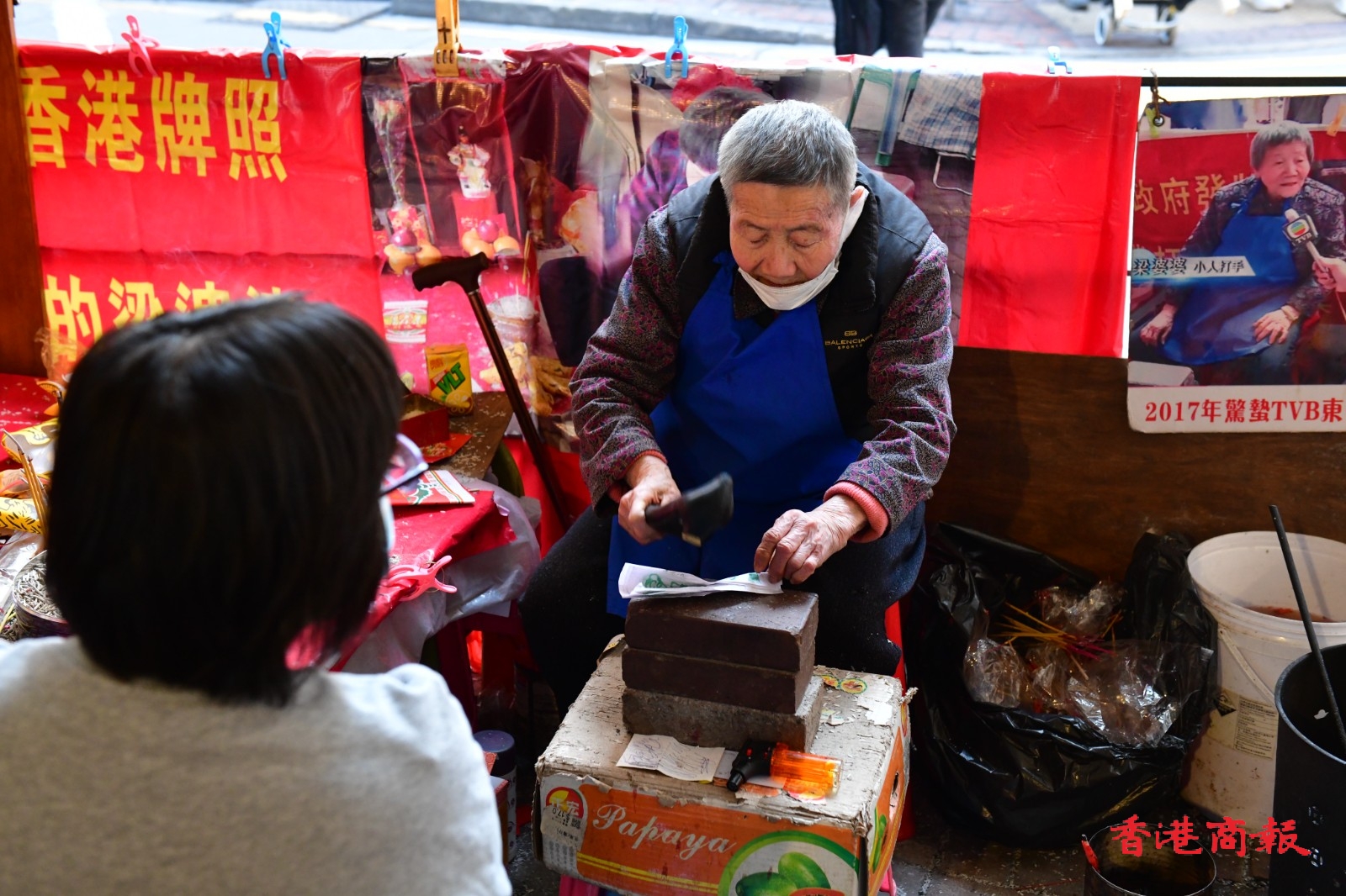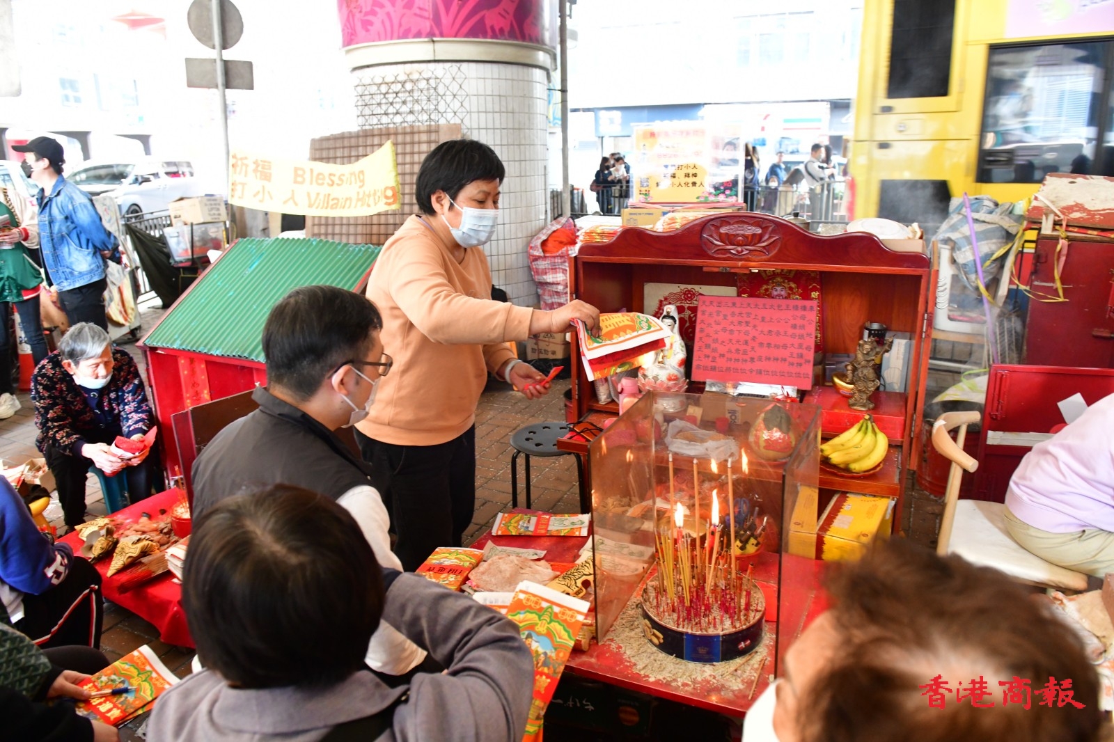 今天3月6日是中國二十四節氣中的「驚蟄」,寓意天氣回暖、春雷始鳴;也是香港傳統「打小人」化解是非的日子!在灣仔鵝頸橋有不少「小人婆」擺檔為市民「打小人」,在「驚蟄」這天是一年中最忙的日子,比平日多出數倍人。(崔俊良攝)