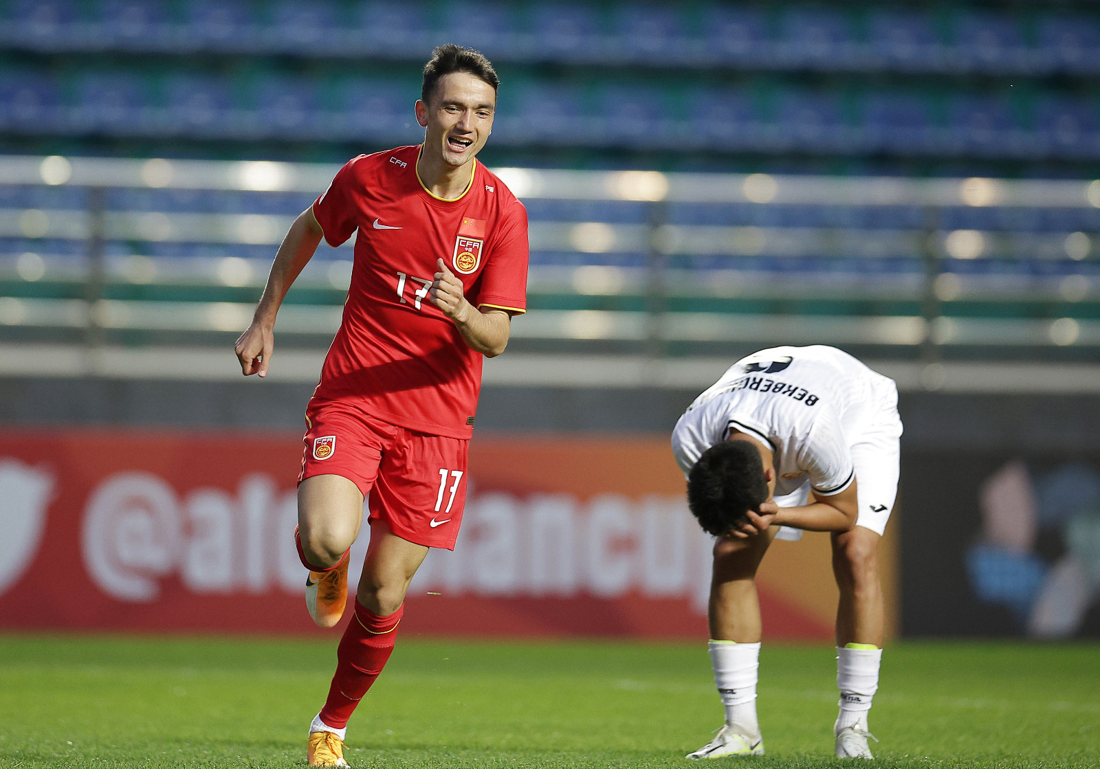 小組前兩輪賽事,中國U20先以1比2不敵日本,次輪以2比0戰勝沙特,今仗出戰吉爾吉斯斯坦,雙方上半場打成0比0平手。易邊後,58分鐘,中國隊憑着一次快速反擊先開紀錄,艾菲爾丁中場引球推進於禁區頂橫傳,對手守衛別爾季諾夫打進超級烏龍球,遠距離踢入自家球門,中國隊領先1比0。戰至完場前2分鐘,落後的吉爾吉斯斯坦由熱尼什別科夫攻入追平一球,雙方以1比1握手言和,由於同組另一戰,沙特以1比2負於日本,中國隊最終積4分,以小組次名的身份打入8強,將於3月12日出戰韓國隊。