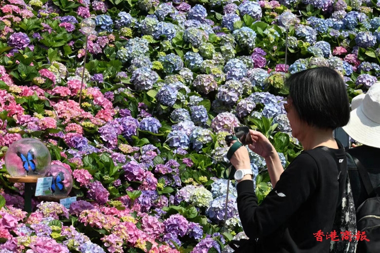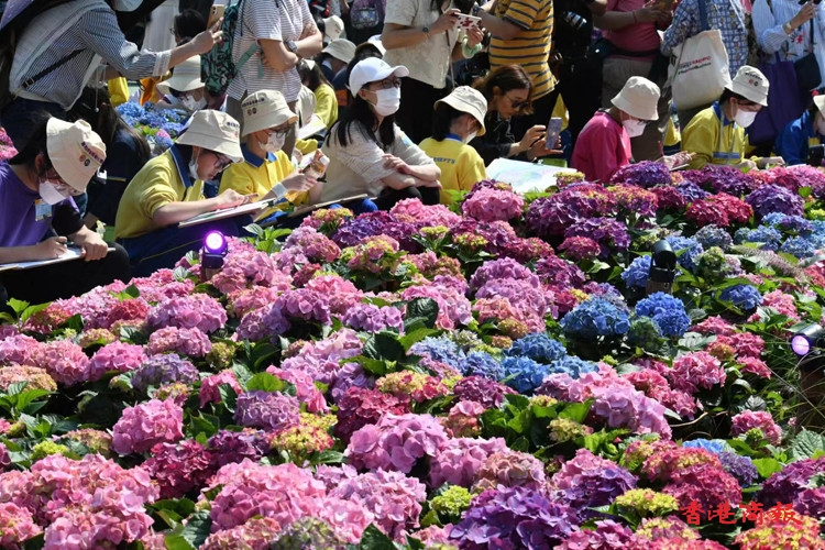 香港花卉展覽是康文署推廣園藝和綠化意識的重點項目,每年為本港市民和世界各地的園藝愛好者提供賞花和交流種花經驗的機會。2023香港花卉展覽將於本月10日至19日在香港銅鑼灣維多利亞公園舉行。今屆花展以花形嬌美獨特的繡球花為主題花,並以「繡麗綻放、幸福滿載」為主題。繡球花素來深受花迷喜愛,其碩大花朵在綻放時絢麗多姿,色彩鮮明,引人注目。市民除了欣賞到主題花「繡球花」及各地的花卉,更可以觀賞到本地、內地及海外園藝機構悉心栽培的盆栽、造型優美的花藝擺設及色彩繽紛的園景設計。(記者 蔡啟文攝)