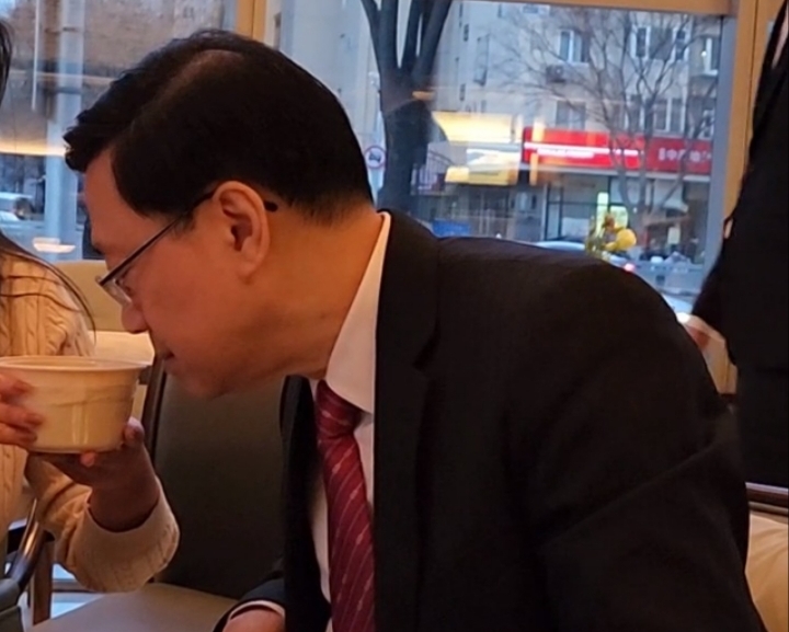 吃完早餐,逛完菜市場,超哥繼續在京城的拜訪活動。傍晚回到酒店,剛好碰上了記者們在等和新聞處處長陳偉偉的茶聚,小記忍住不笑問早餐好不好吃啊?超哥說非常好呀,小記説,那一會兒會不會也來和我們聊一下?超哥說,考慮一下。
