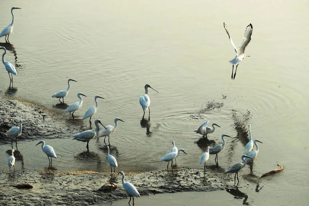 黑臉琵鷺、白鷺、鸕鶿、黑嘴鷗、紅嘴鷗……大批水鳥在深圳共迎冬去春來。深圳特區報記者 李忠 攝