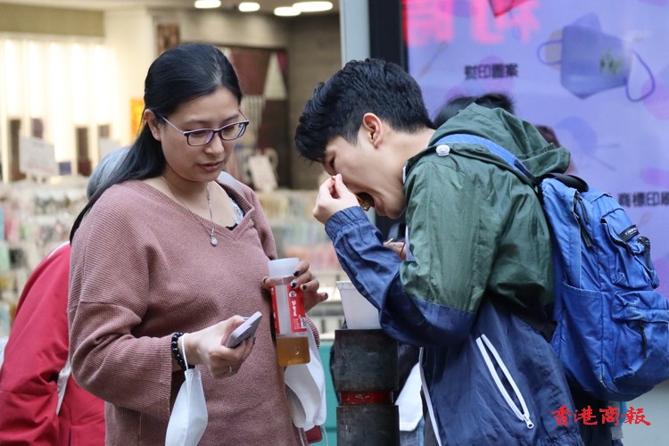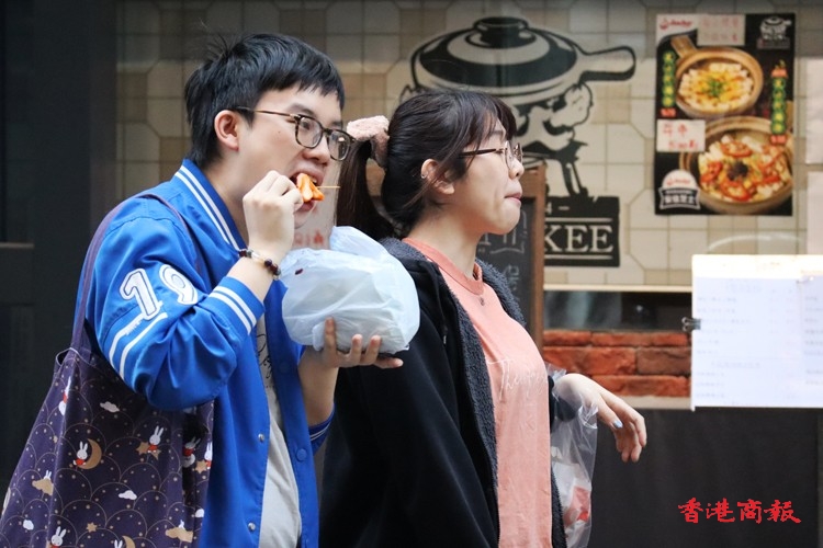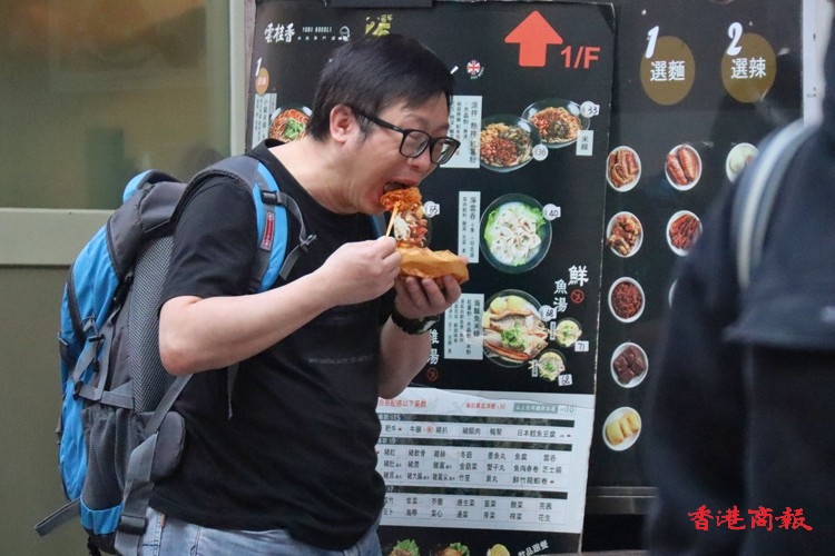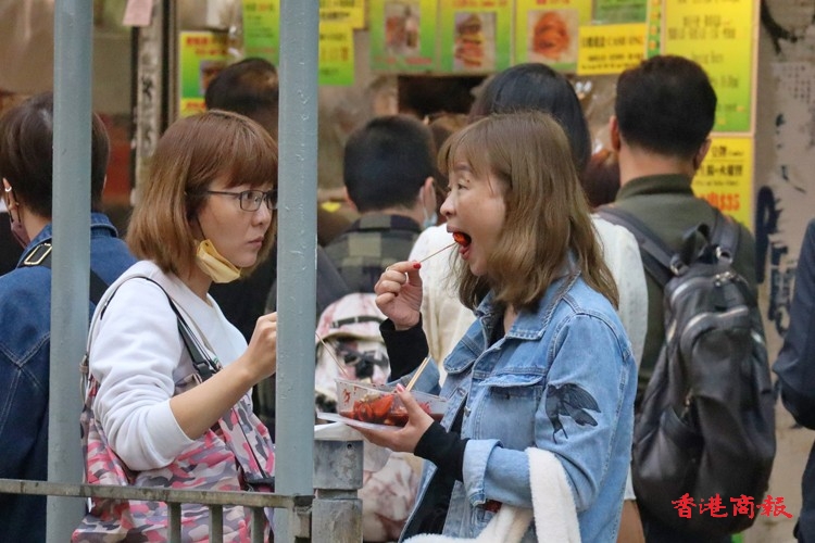 旺角多間小食店,經常出現排隊人龍,為的是吃上心頭至愛,有人獨自「偷食」,有人則與三兩知己一邊品嚐美食,一邊談笑風生。他們站在街頭,也顧不上儀態,大口大口的吃,滋味無窮,一解口腹之慾。這些地方小食,不但吸引香港市民,就連海外遊客也專程到來品嚐。(馮瀚文攝)