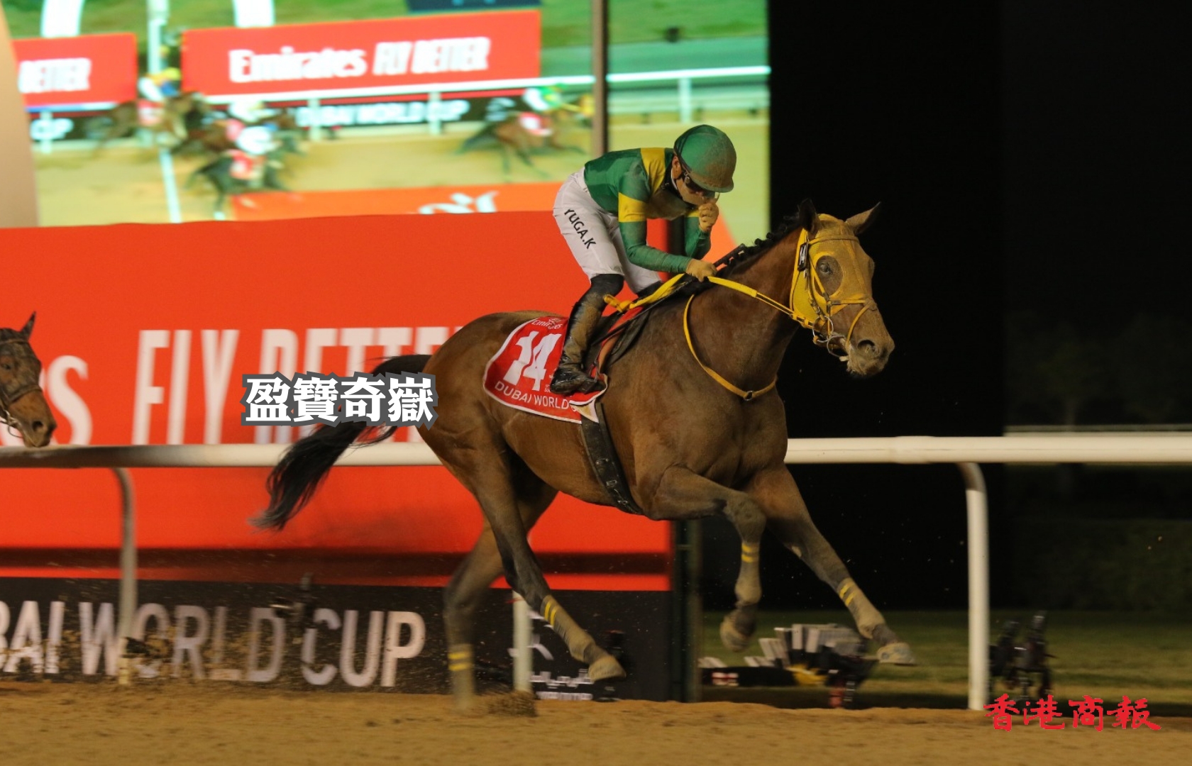 尾場壓軸戲一級賽2000米泥地杜拜世界盃,日本代表「盈寶奇嶽」在川田將雅胯下,出閘留前鬥後,轉彎拉出外檔衝刺,末段逢馬過馬,率先衝線,捧走杜拜世界盃,贏出這場總獎金達到9414萬港元的一級賽。「阿爾及爾」、「徽章路」分跑亞、季軍。(文、影片編輯:志誠 圖、影片:特約記者胡迪)