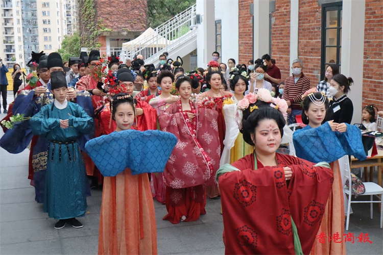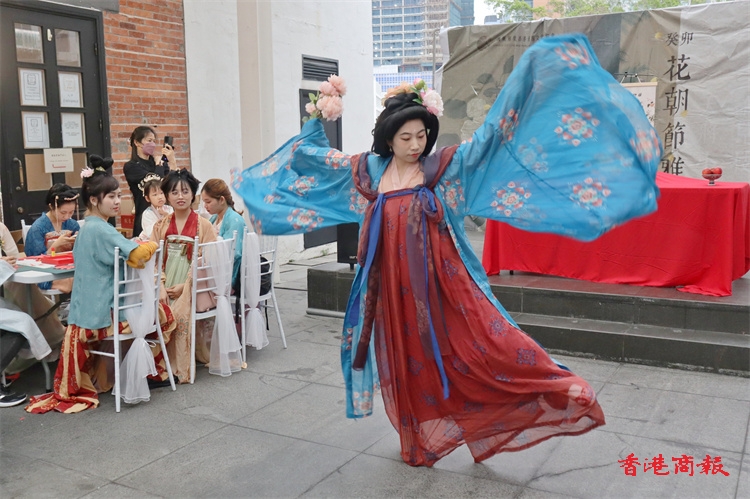 隨着香港恢復全面通關,各種文化交流活動逐漸回歸。由國風雅集香港漢服文化協會主辦的「第二屆香港花朝節」,今天(26日)在饒宗頤文化館舉行,活動得到澳門青年國際藝術文化協會、深圳市漢服文化協會支持。除了復原十二花神祭祀儀式外,還有花神們(12男花神、12女花神)走秀、國風遊戲比賽、非物質文化遺產手工工作坊、漢服妝造體驗等,讓市民認識和體驗漢服文化。(馮瀚文攝)