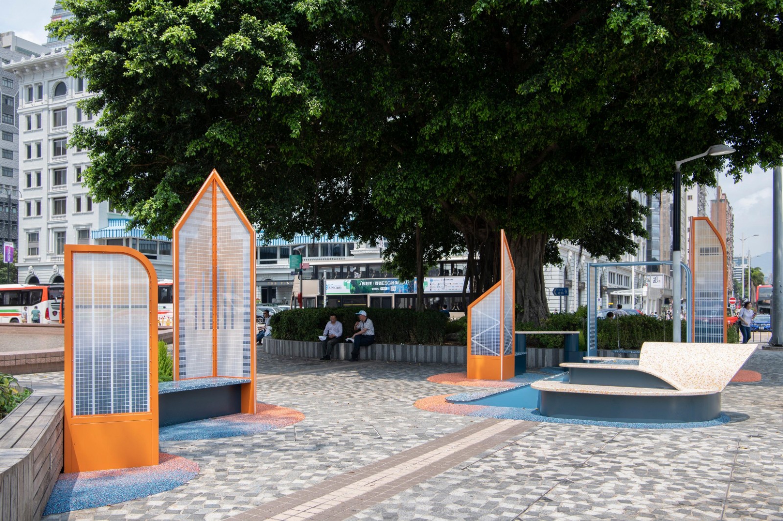 藝術家兼建築師蔡偉權,創作六組形態不一、亦動亦靜的藝術裝置作品《人遊於港》。作品糅合本地的建築特色,以維港兩岸地標性建築的外形及外牆設計為靈感,將香港文化中心、香港會議展覽中心及國際金融中心等打造成「坐得到」的香港地標,將香港藝術館前方的藝術廣場變為可供遊人休憩耍樂的公共空間,讓人在煩囂中忙裏偷閒。藝術裝置上的屏風裱起了一幅幅維港兩岸地標建築的圖紋細節,呈現充滿香港特色的當代建築設計美學。