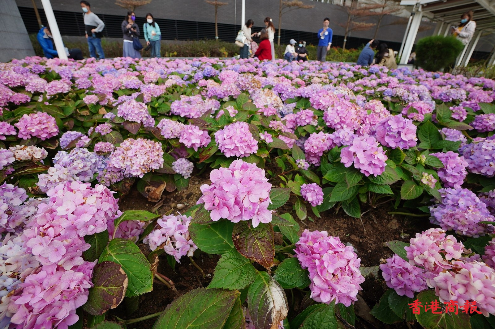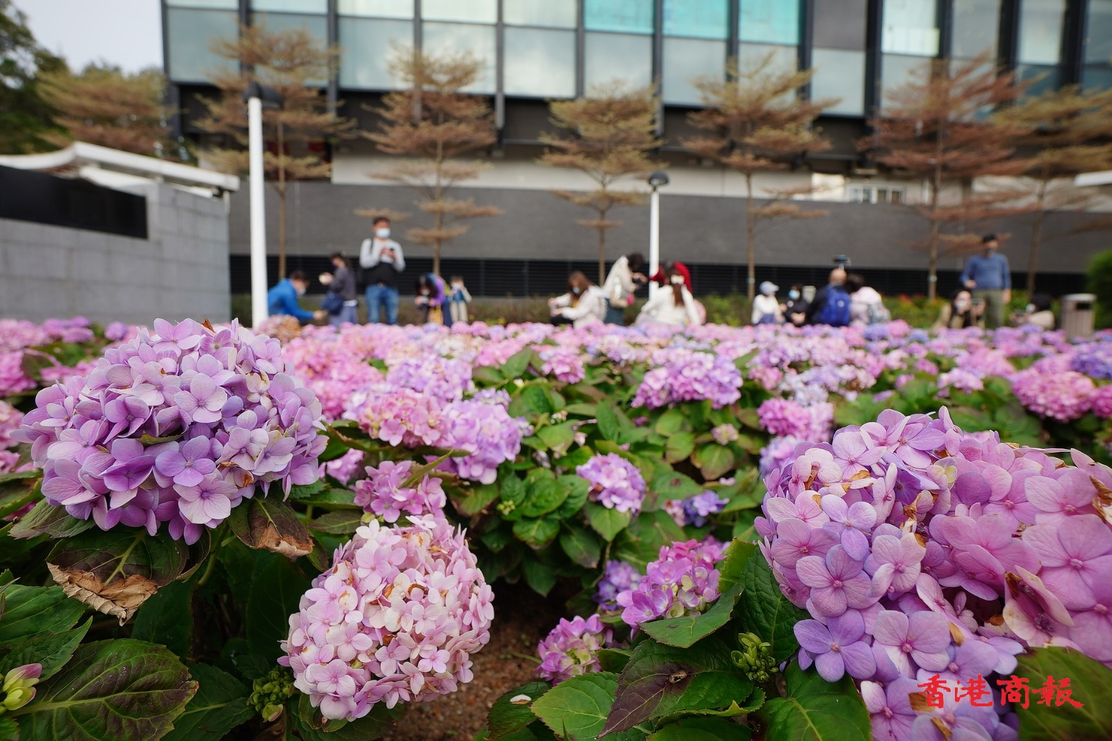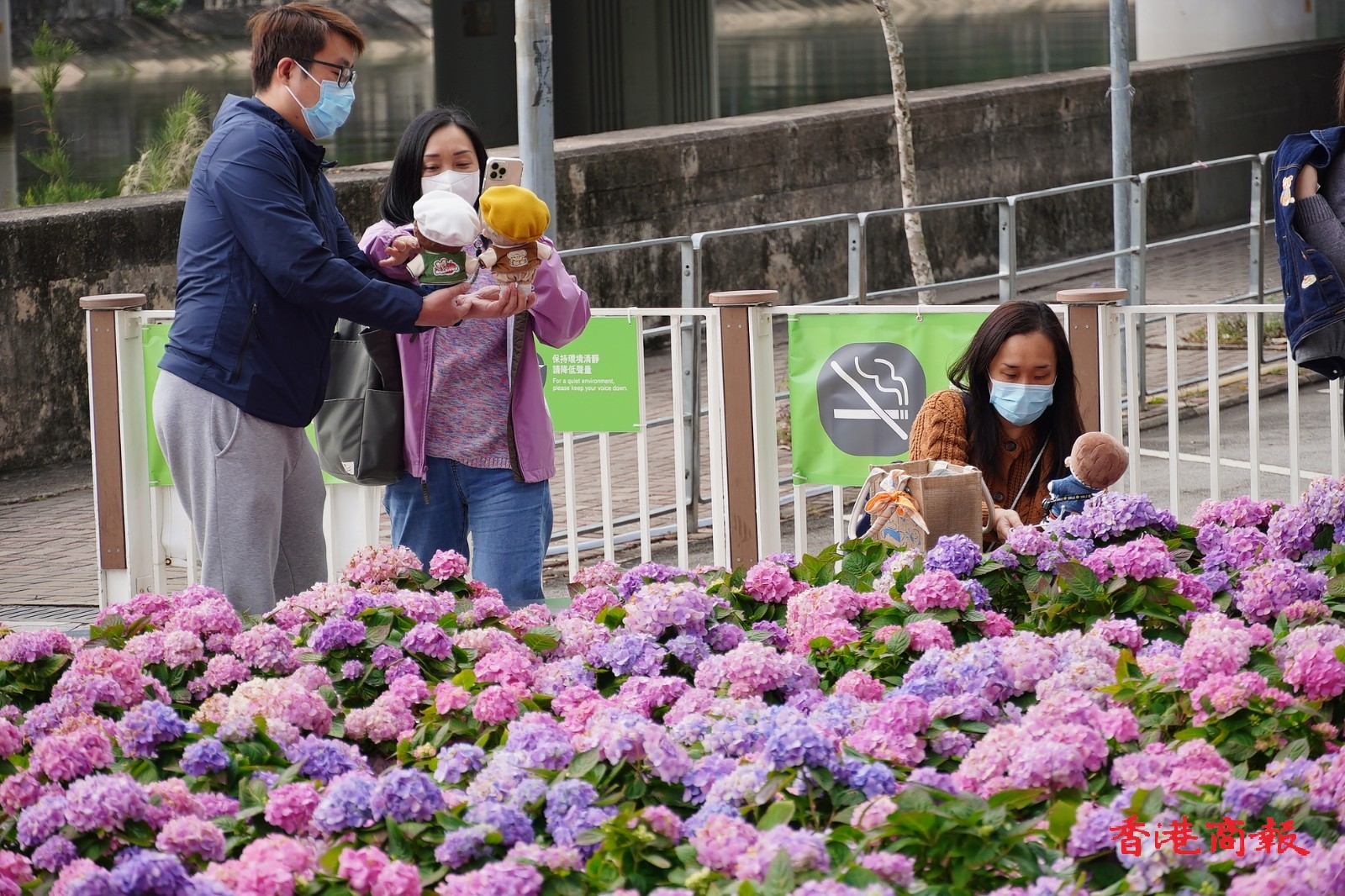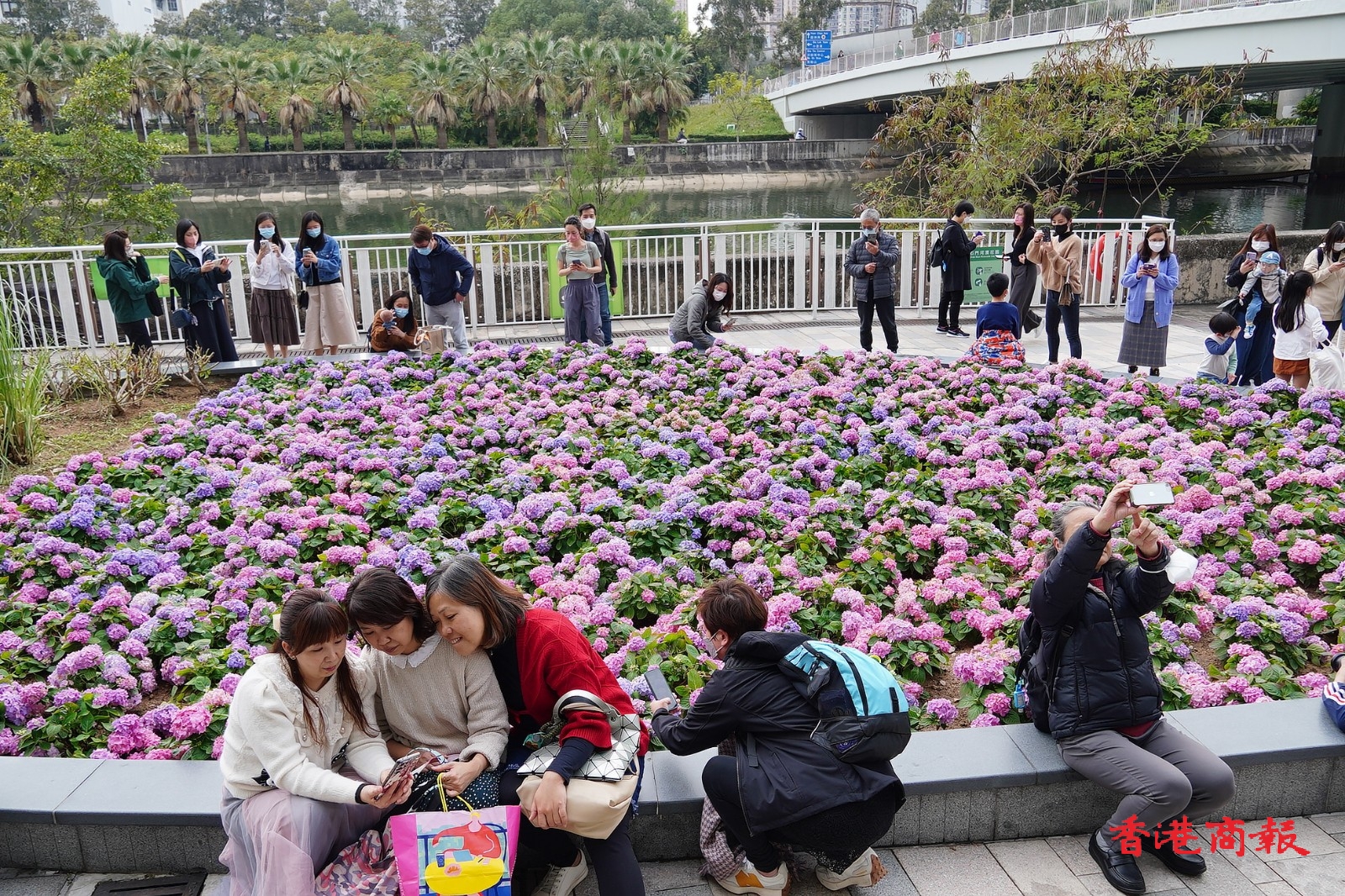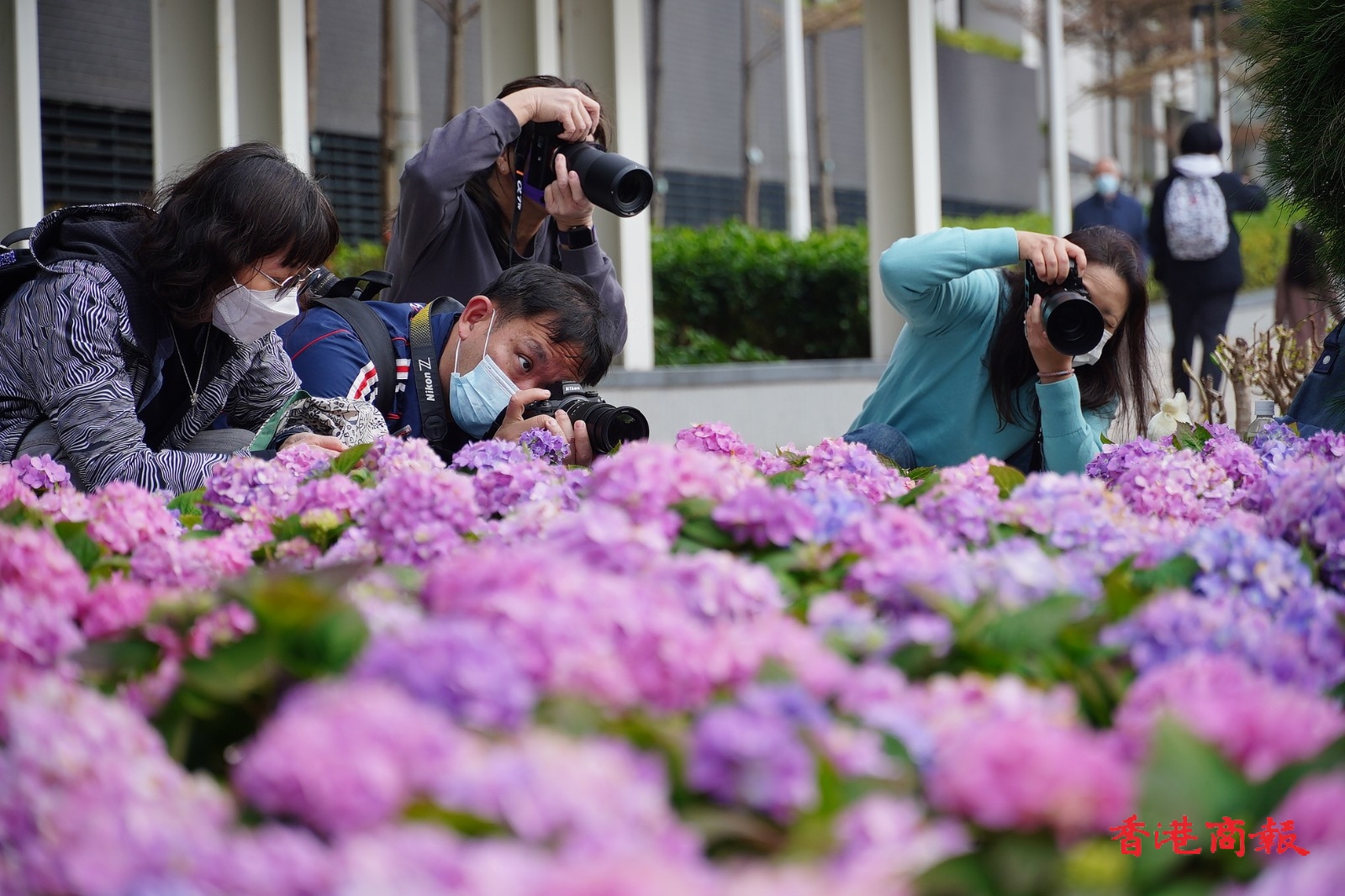 上周剛過二十四節氣之一春分,全港各區生氣洋溢,處處都是「小桃源」。鄰近沙田小瀝源碩門邨的石門河濱花園,有一小花圃栽種着滿滿的繡球花,色彩繽紛,形成春天獨有景象。花圃雖小,但因交通方便,從港鐵石門站B出口步行約五分鐘便可抵達,在色彩繽紛的繡球花展現新姿之下,吸引了不少市民來觀賞打卡。 (記者 俊文攝)
