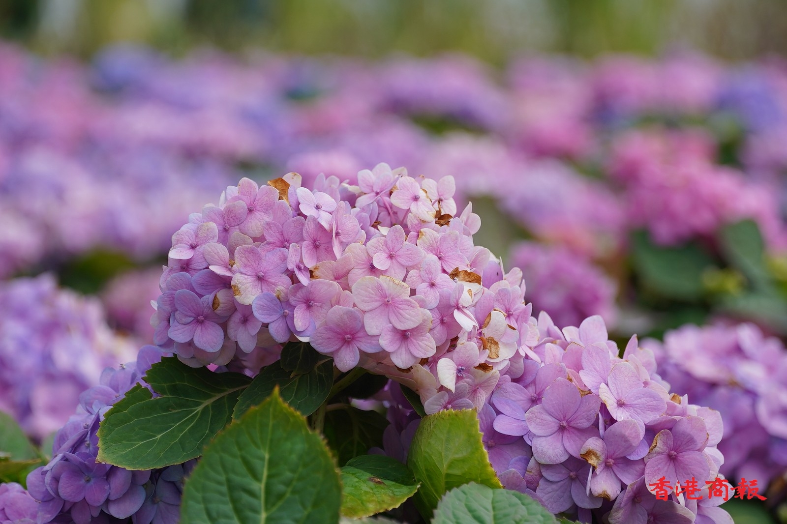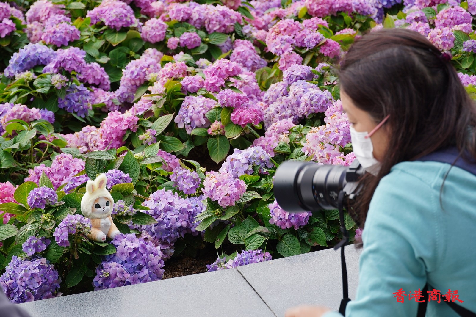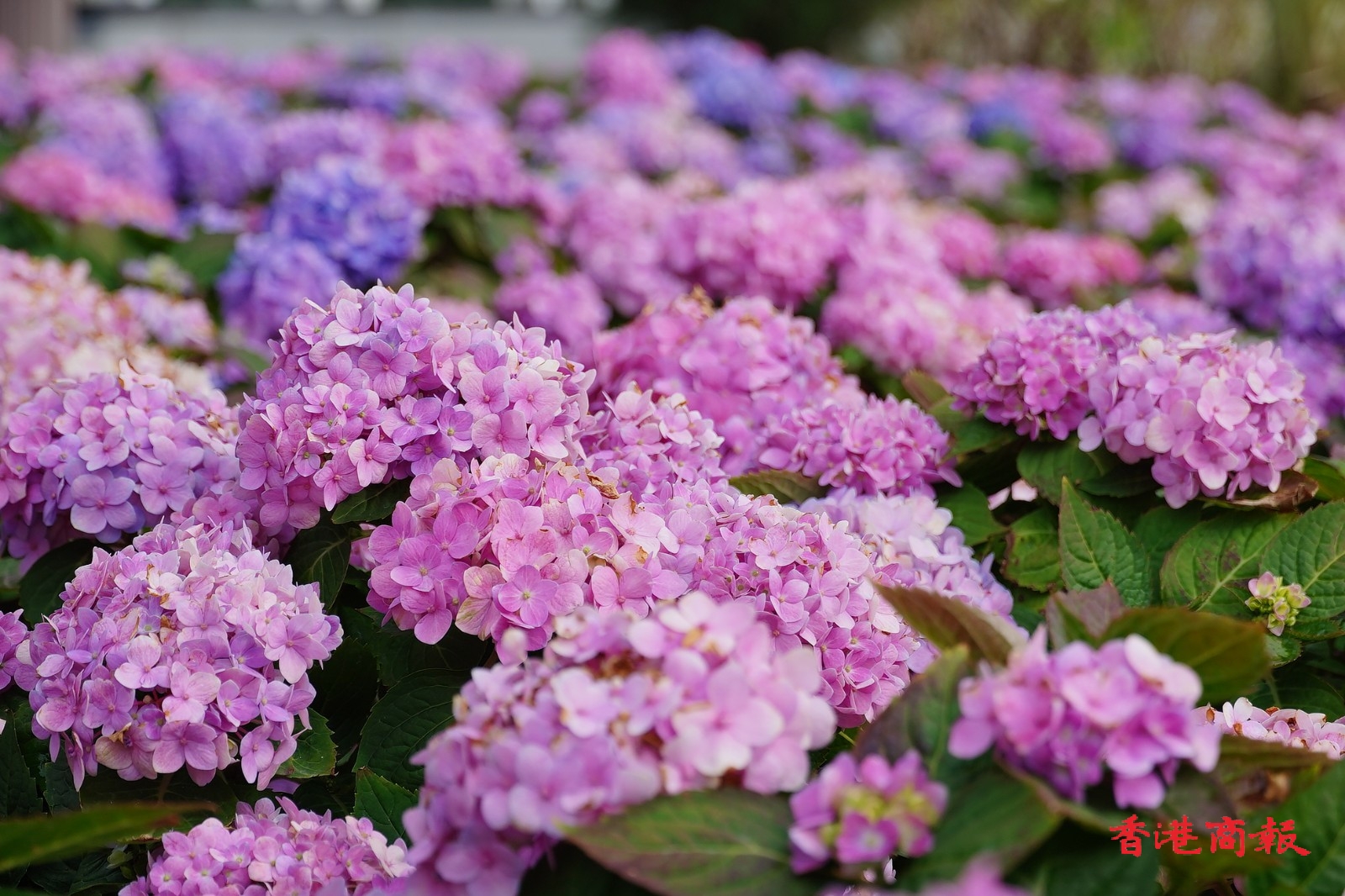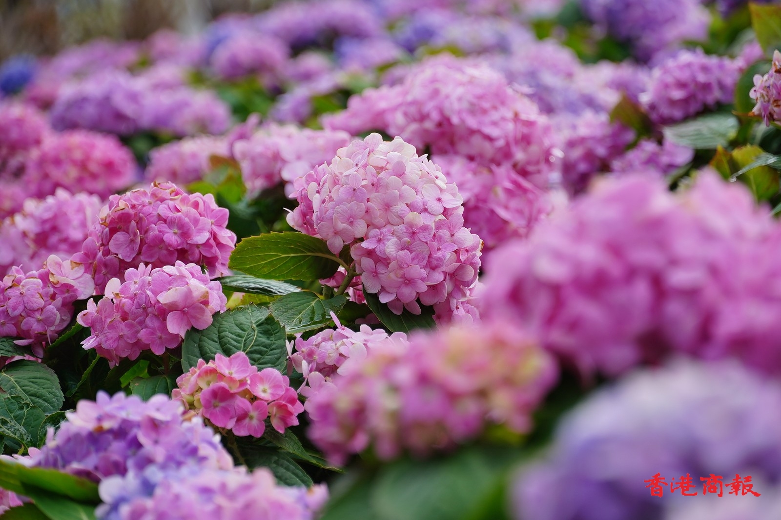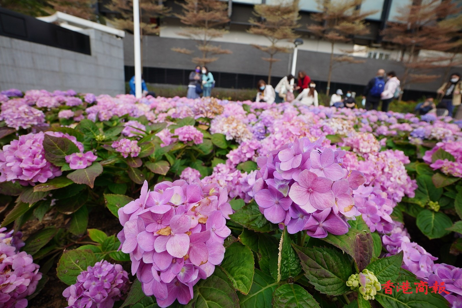上周剛過二十四節氣之一春分,全港各區生氣洋溢,處處都是「小桃源」。鄰近沙田小瀝源碩門邨的石門河濱花園,有一小花圃栽種着滿滿的繡球花,色彩繽紛,形成春天獨有景象。花圃雖小,但因交通方便,從港鐵石門站B出口步行約五分鐘便可抵達,在色彩繽紛的繡球花展現新姿之下,吸引了不少市民來觀賞打卡。 (記者 俊文攝)