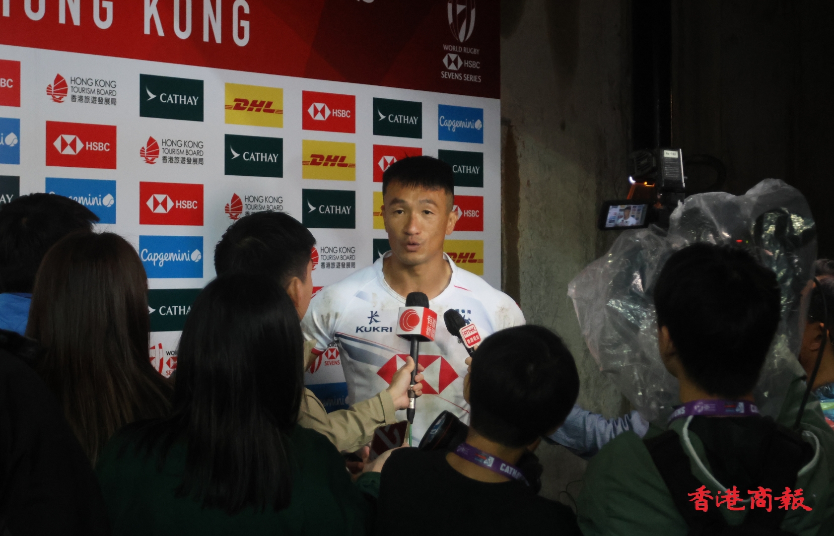 今仗正是港隊主力姚錦成第70次代表港隊出戰七欖,他在賽事中後備上陣,總結今場賽事,姚錦成表示球隊上半場表現欠佳,未能把握到機會,幸好在半場調整後,下半場表現已經轉好,少了失誤之餘,還能連續兩次達陣得分,他坦言天雨都是影響到球隊表現的一個因素。
