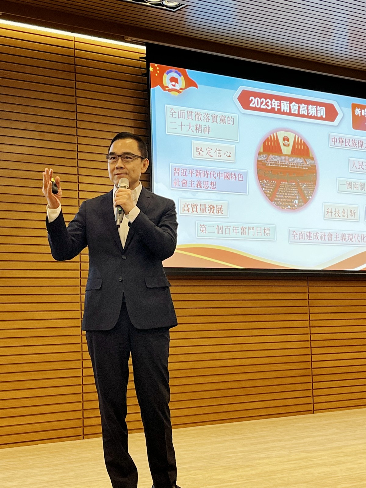 何潤生分享了習近平主席和王滬寧常委的重要講話,亦向在場的與會人員介紹了金融穩定發展的議題、澳門未來發展方向的意見以及其擔任委員的履職心得及成果。他認爲,澳門應充分利用好中央支援澳門發展的各項政策措施,有效落實「1+4」發展策略,進一步通過政策推動經濟復蘇、改善民生。新時代的澳門居民受過更好的教育,擁有更多元化的知識結構,更應該托舉起深合區建設、琴澳一體化建設的宏願,為國家及澳門發展貢獻力量。