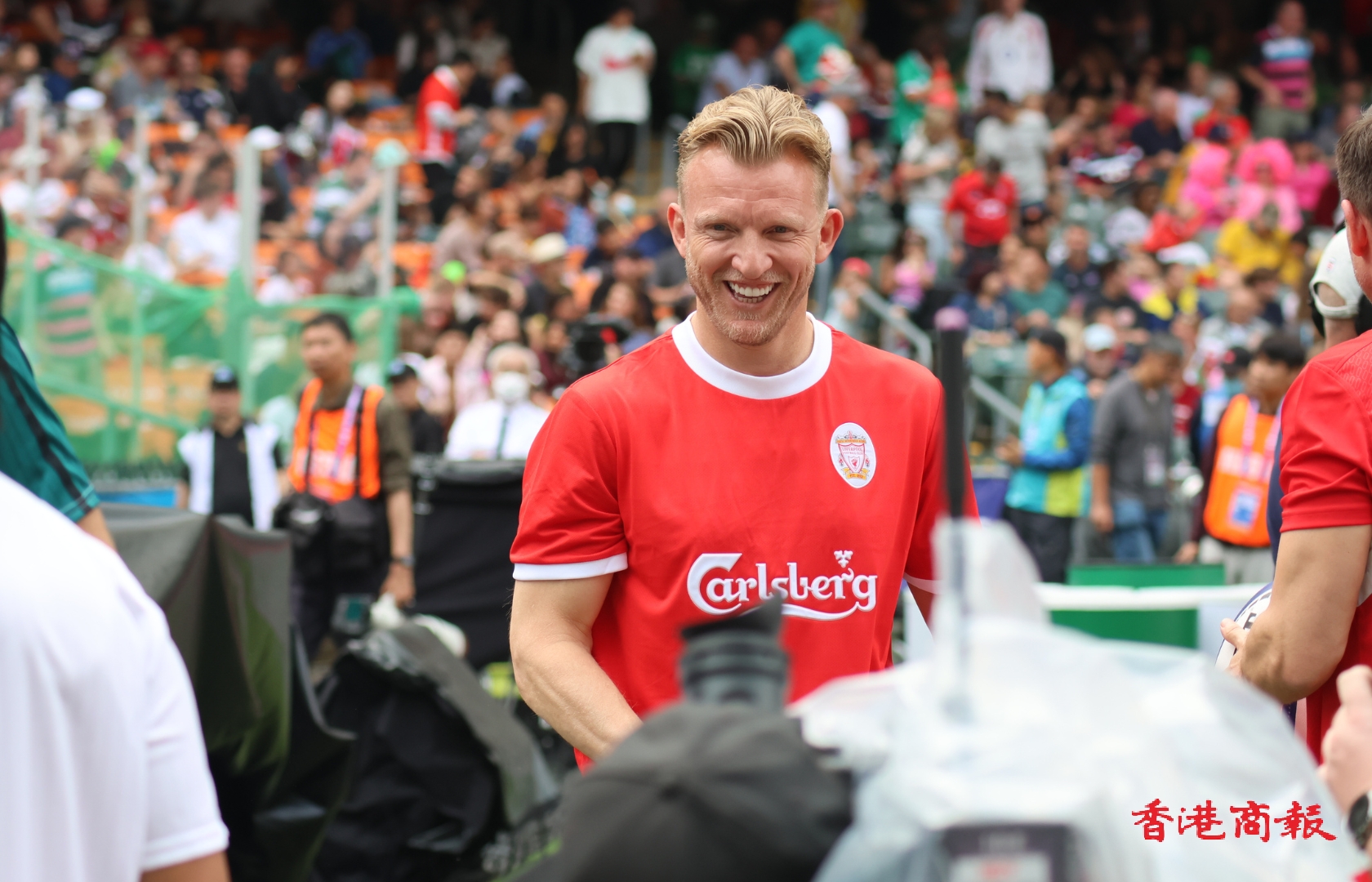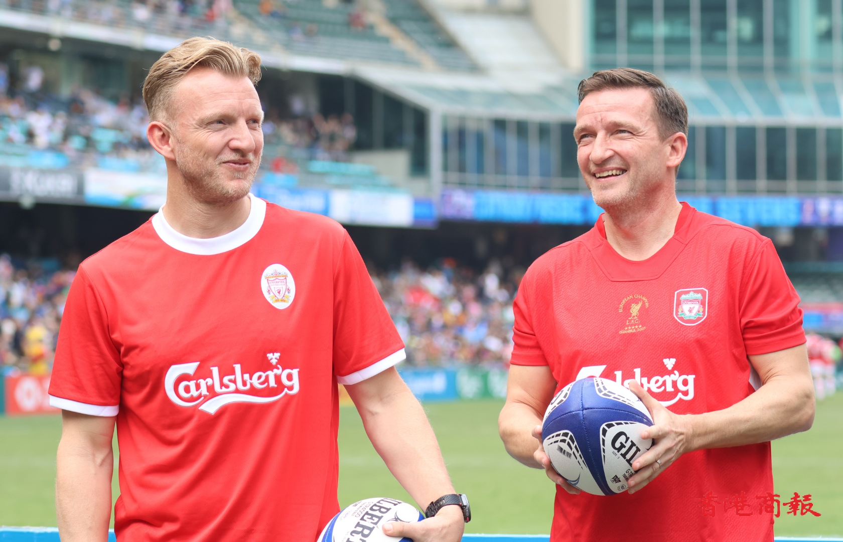 4月1日,七欖同時迎來兩位利物浦傳奇球員古積特、史米沙,兩人現身香港大球場出席品牌活動。古積特、史米沙特別落場玩遊戲,要用腳射欖球入啤酒桶內。史米沙其中一腳成功將欖球踢入啤酒桶內,立即振臂歡呼,而古積特亦隨即上前擁抱慶祝,場面搞笑。(文:泇濬 圖/視頻:志誠)