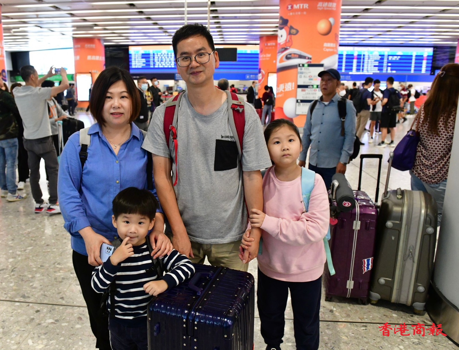 黃先生一家四口打算到廣東普寧探親及旅遊,他表示,已經提早一個月通過旅行社購買車票,但仍買不到直達普寧的車票,最終決定先坐高鐵到深圳北再轉車,估計需要花費多一倍時間。黃太太表示,會到普寧四日,疫情以來都沒有外出遊玩,今次是3年來首次離港。黃小朋友稱,第一次搭高鐵,感到很興奮。