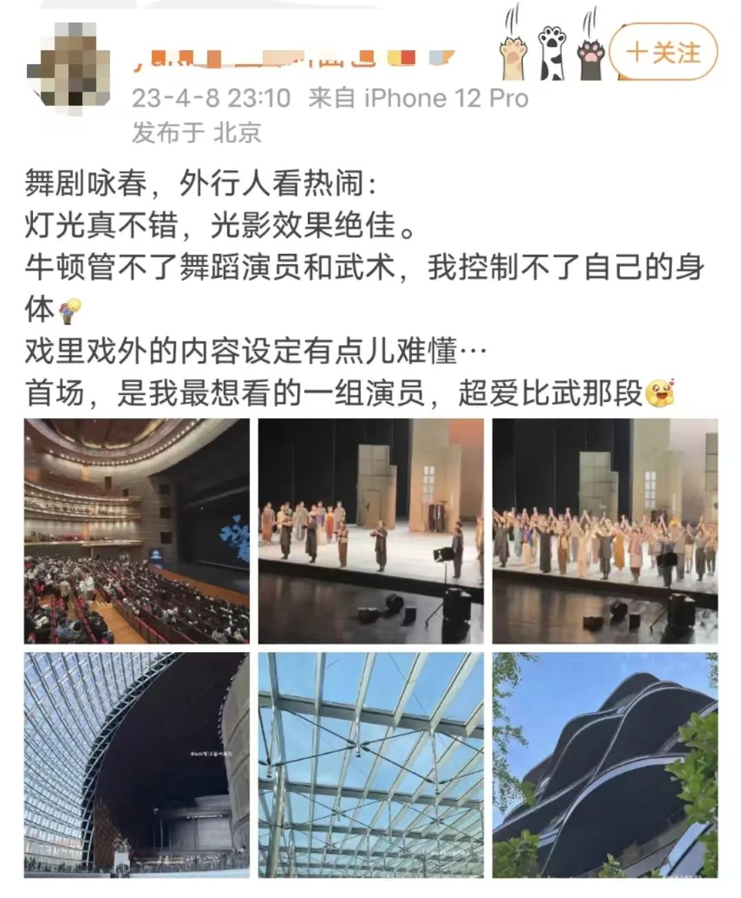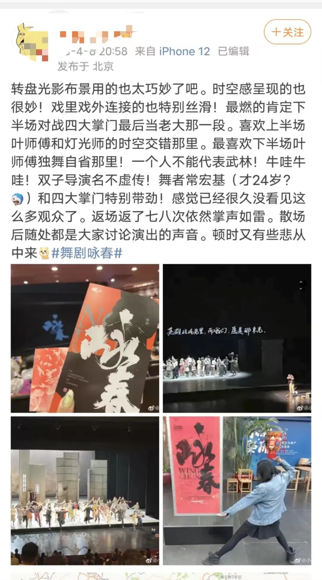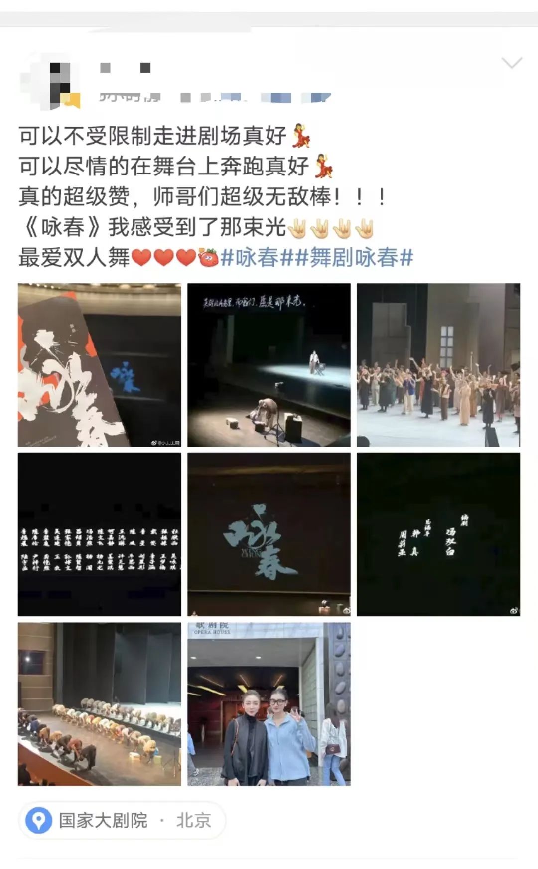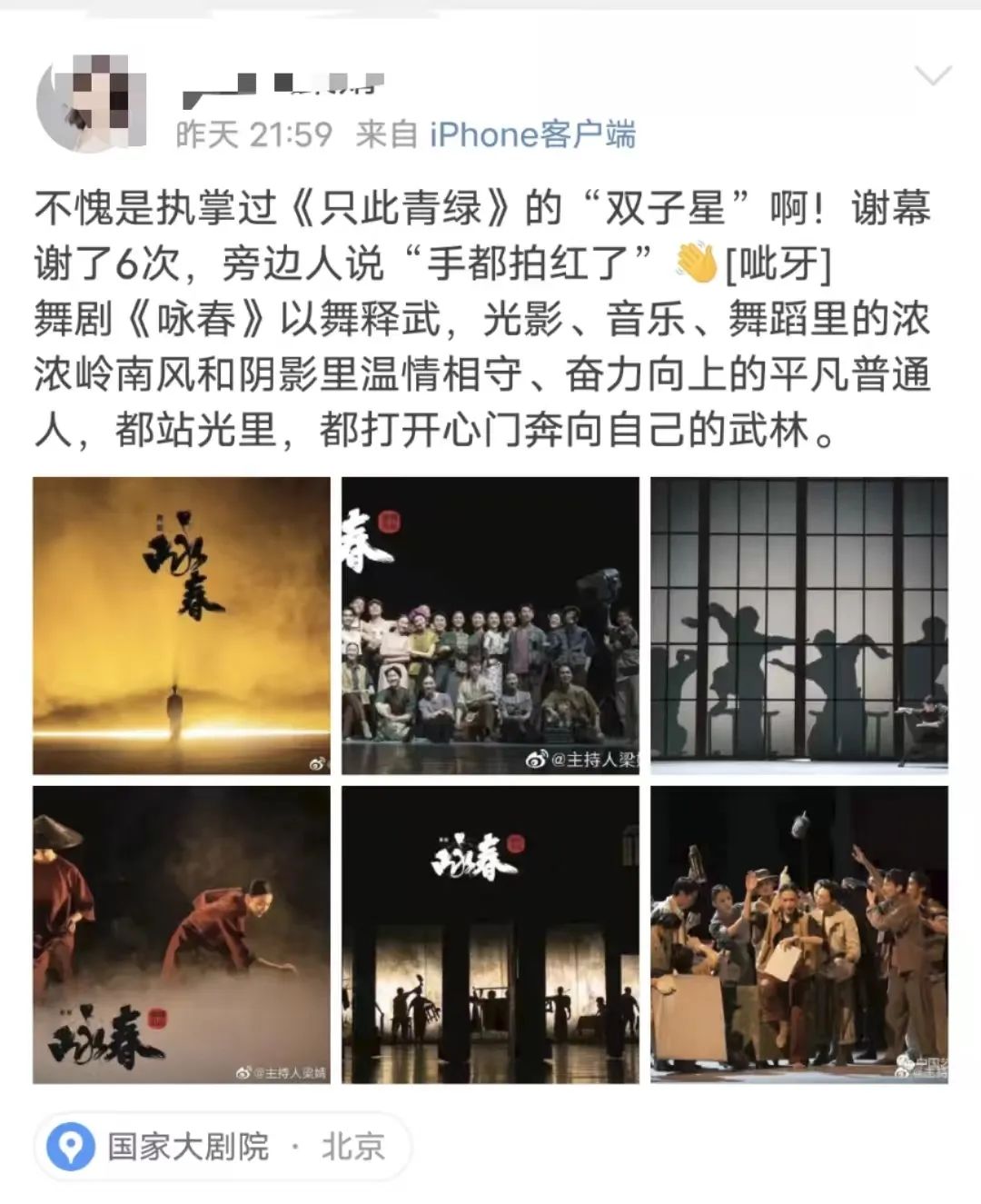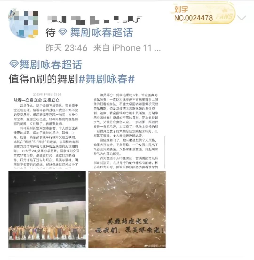 首演當日,不少觀眾早早來到演出現場,「國家大劇院一開票我們就開始搶,一直刷刷刷,結果官網當天還崩了一小時,導致我們沒搶到心儀的座位,有點小遺憾。」演出結束後觀眾們毫不掩飾自己對《詠春》的喜愛,有觀眾表示「散場之後隨處都是的大家討論演出的聲音」。