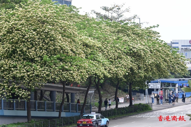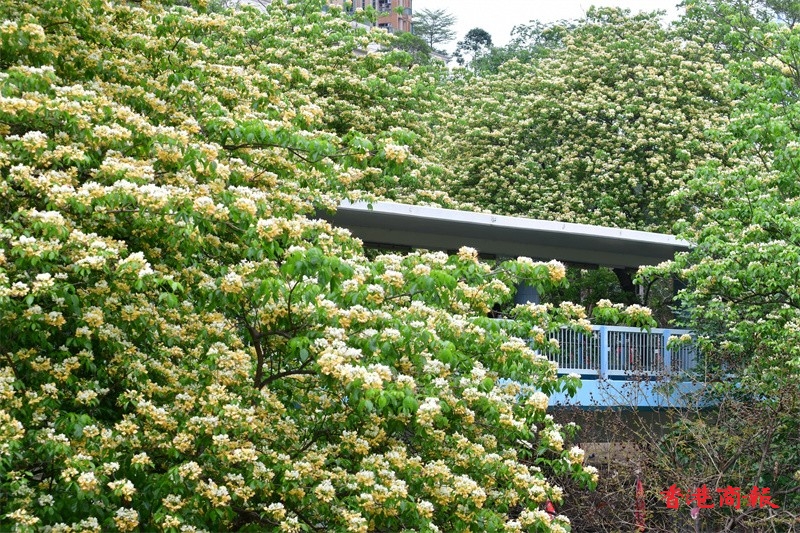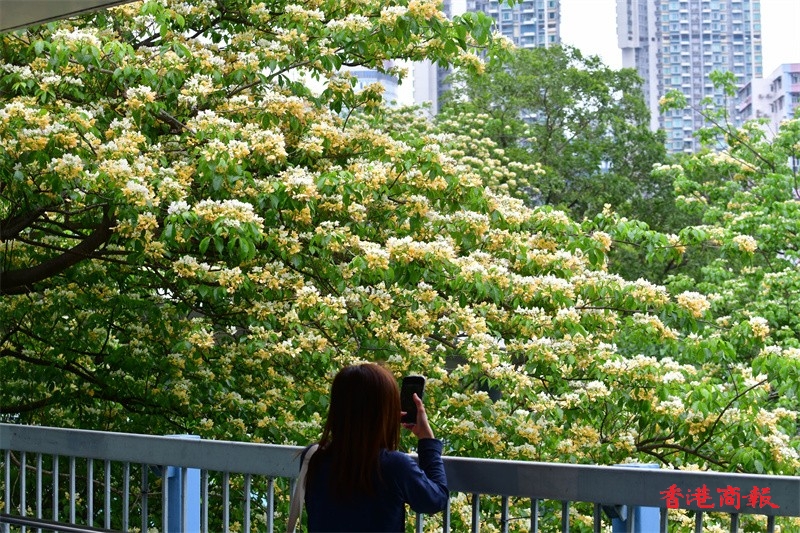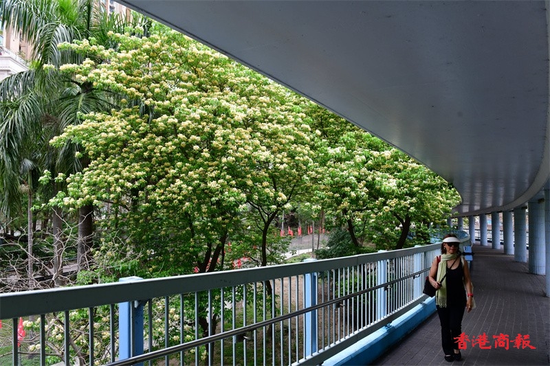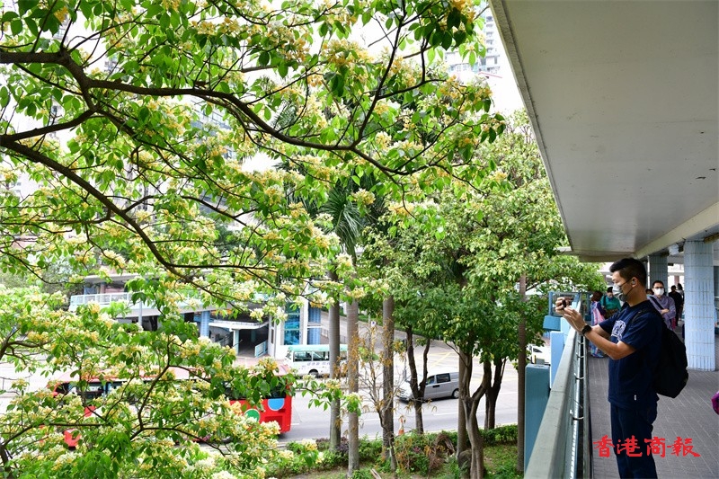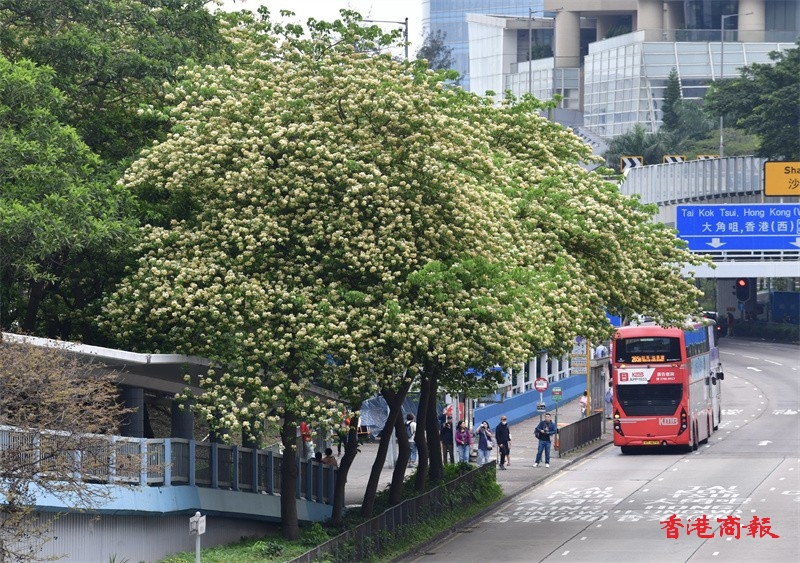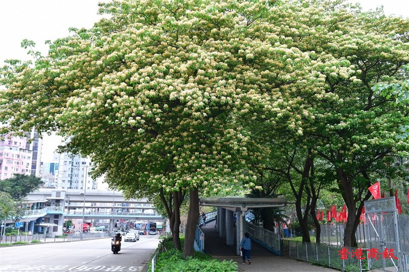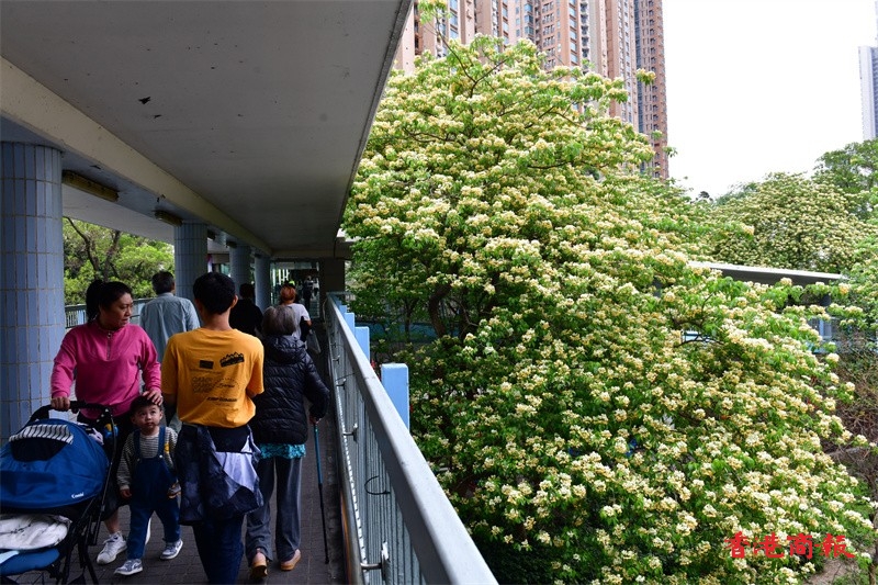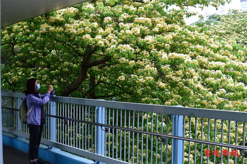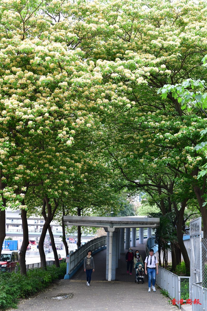 今天是復活節公眾假期最後一天,市民繼續懷着好心情欣賞美景美樹。由旺角通向大角咀奧海城的行人天橋兩旁,大棵的魚木樹近日正在盛放開花,一朵朵淡黃、素白色的魚木花茂密綻放,形成密密的花海。