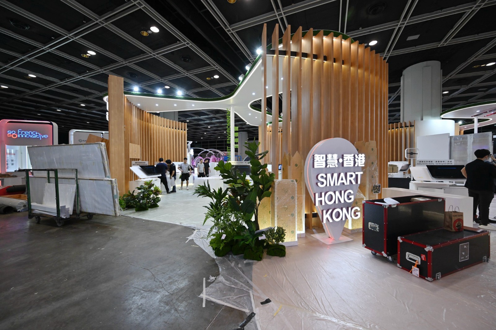 頂圖:首屆香港國際創科展明日拉開大幕。圖為政府資訊科技總監辦公室設置的智慧香港展館。 黃偉綸FB圖片