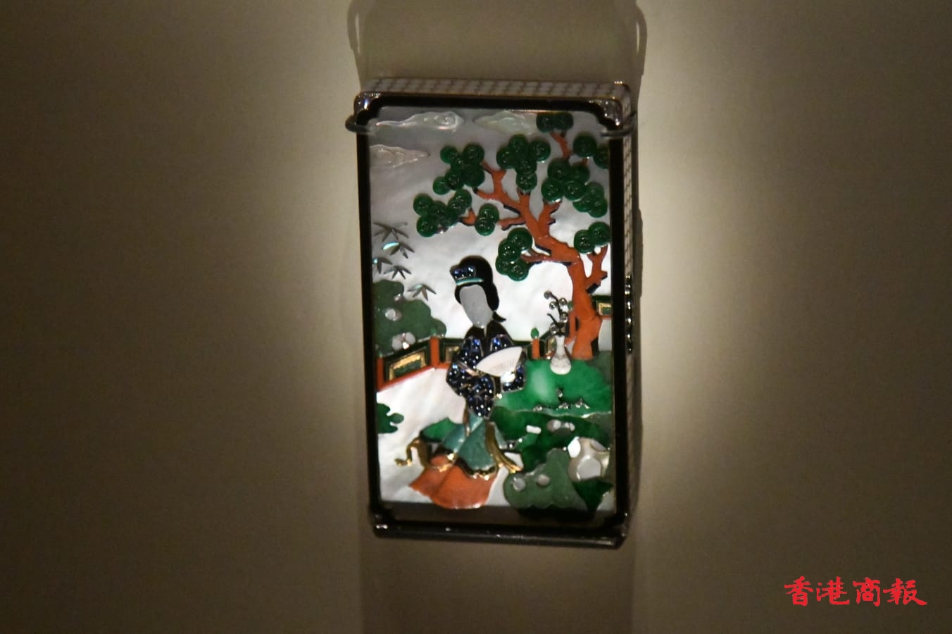 卡地亞巴黎於1928年以藍寶石及綠松石等製作的清代康熙五彩庭院仕女圖瓷盤中國風格化妝盒。