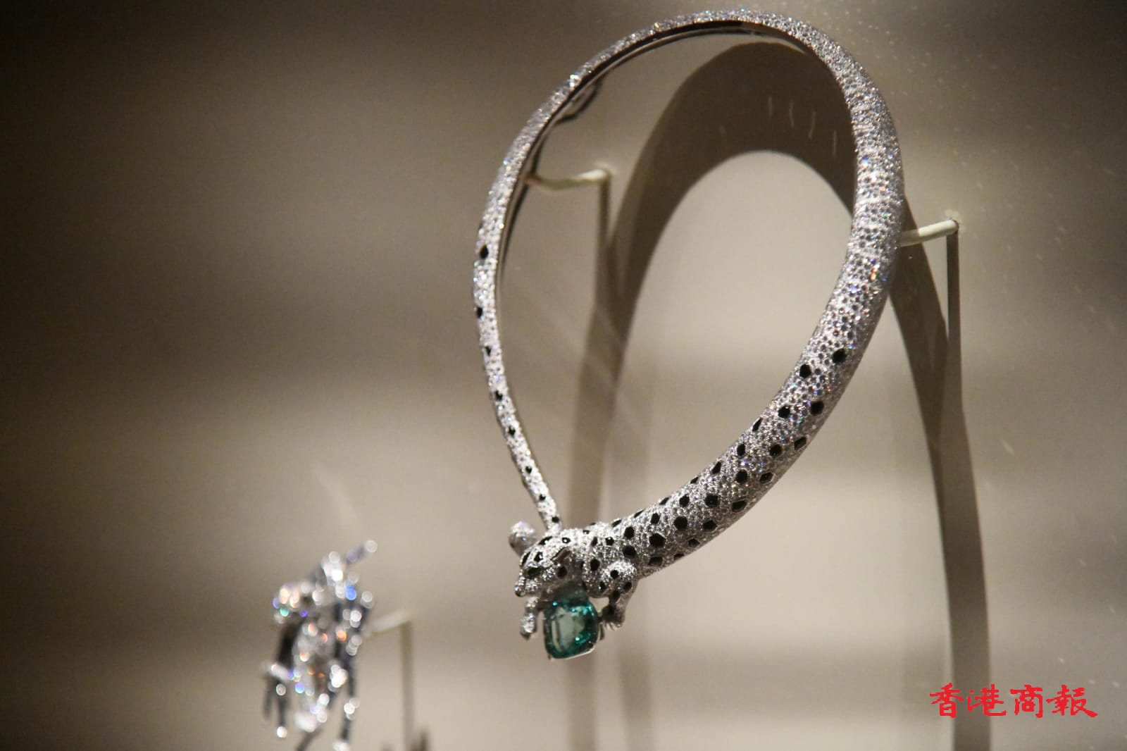 故宮文化博物館副館長(研究策展及節目)王伊悠稱,重點展品包括卡地亞巴黎於1949年出品、溫莎公爵夫人擁有的美洲豹夾式胸針。其他展品則有設計受中國美學影響、卡地亞巴黎於1928年以藍寶石及綠松石等製作的清代康熙五彩庭院仕女圖瓷盤中國風格化妝盒;1934年出品、美國零售業商伍爾沃斯百貨繼承人芭芭拉‧赫頓在結婚時收到、由27顆透明度和光澤極高的翡翠珠串連而成的項鍊。(記者:李銘欣 / 攝影:蔡啟文 / 視頻:Sonia)