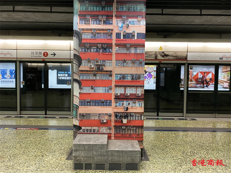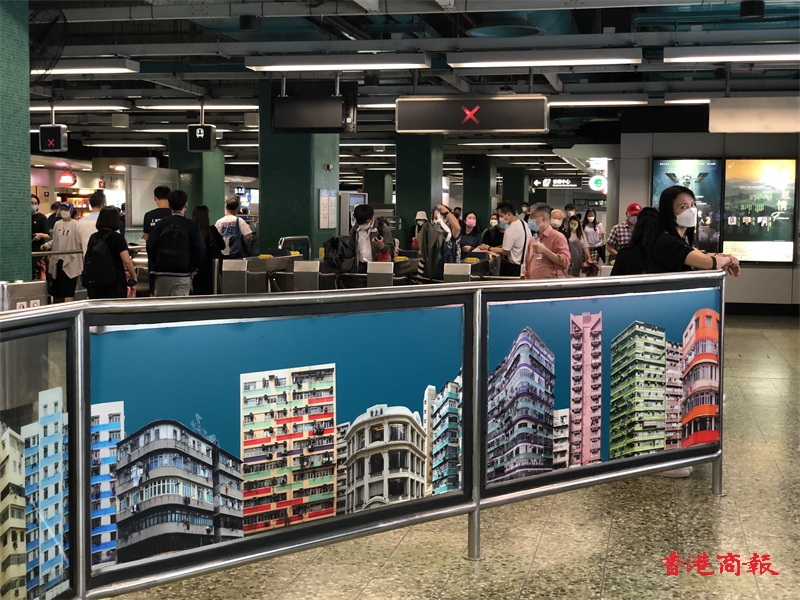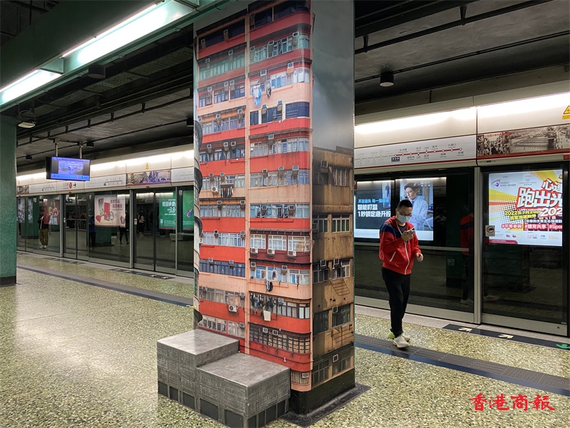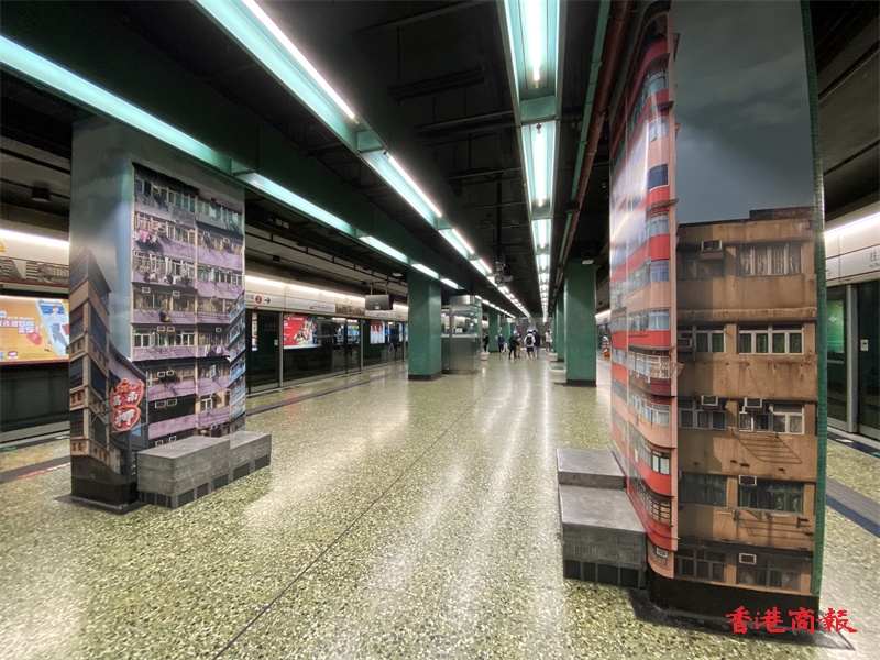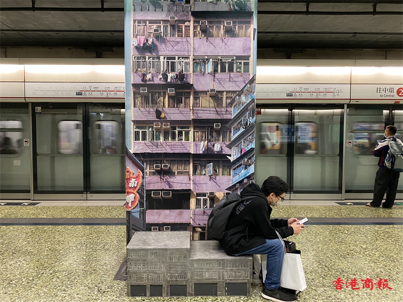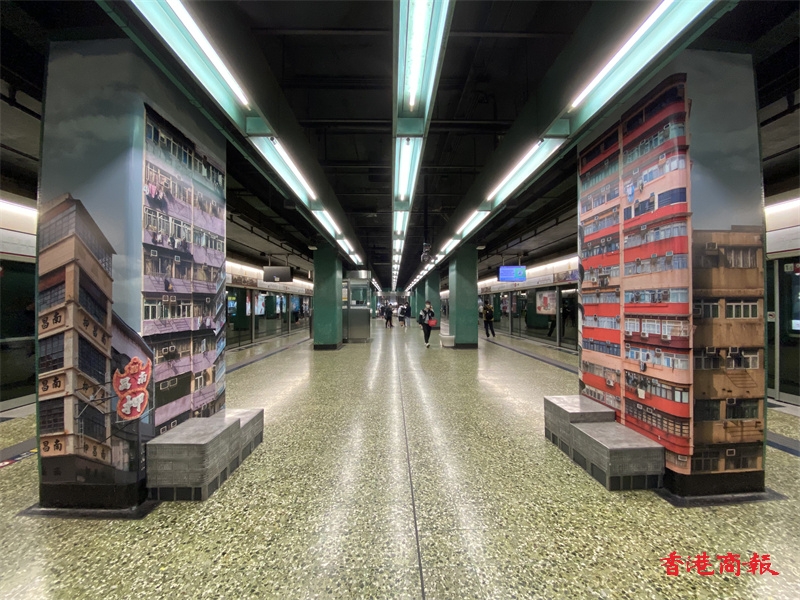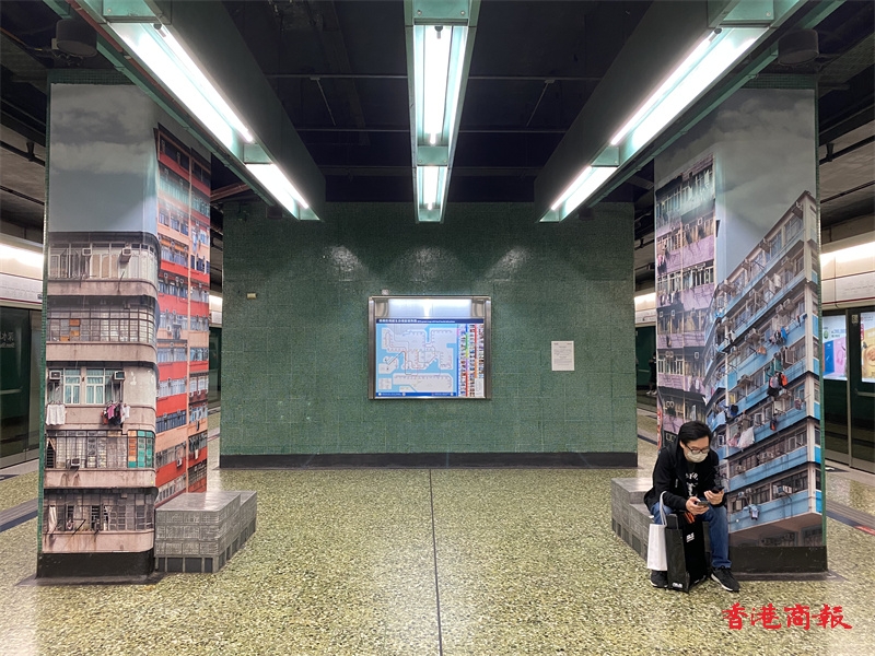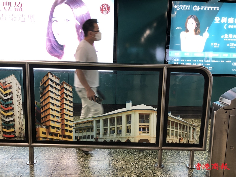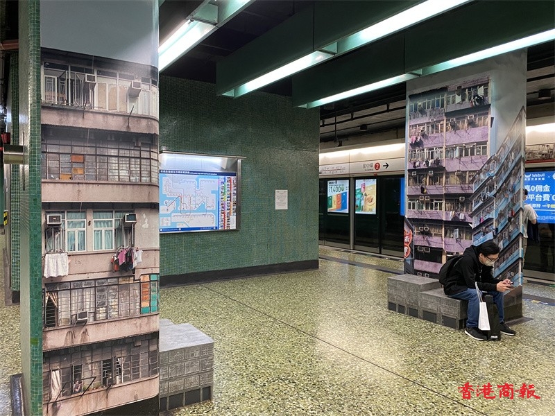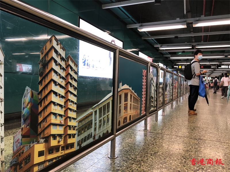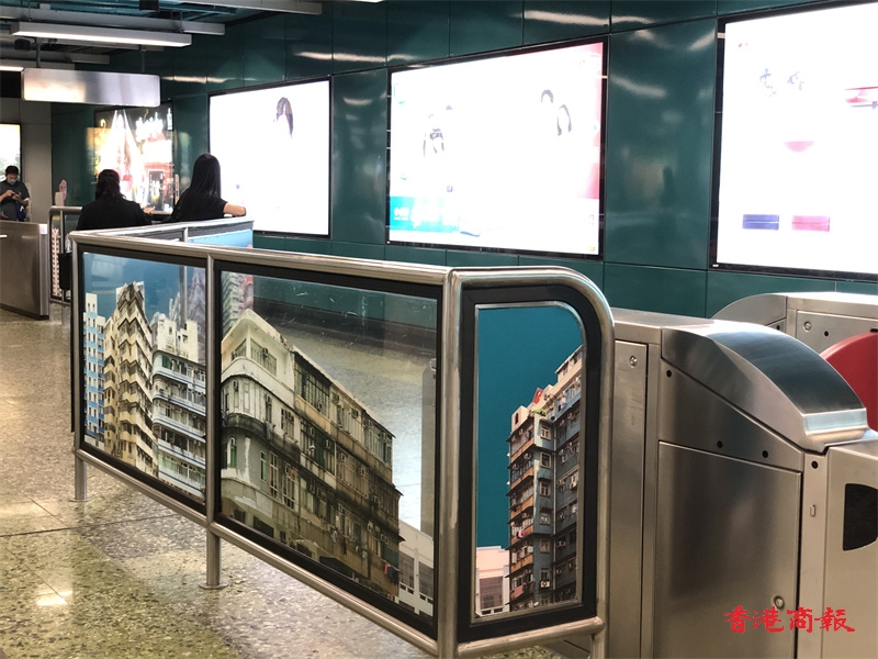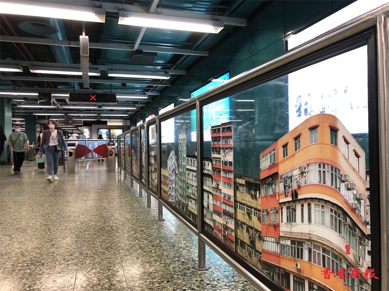 薩凡納藝術設計大學(SCAD)與港鐵公司攜手合作,為深水埗站添置藝術品。在SCAD教授的指導下,14位來自該校的學生,透過為期12周的體驗學習,探討深水埗的傳統建築和城市環境。「城市的特性」捕捉本地不同行業現有的建築特色以及獨特的社區活力,展示深水埗區的獨特性。(記者 馮俊文 攝)