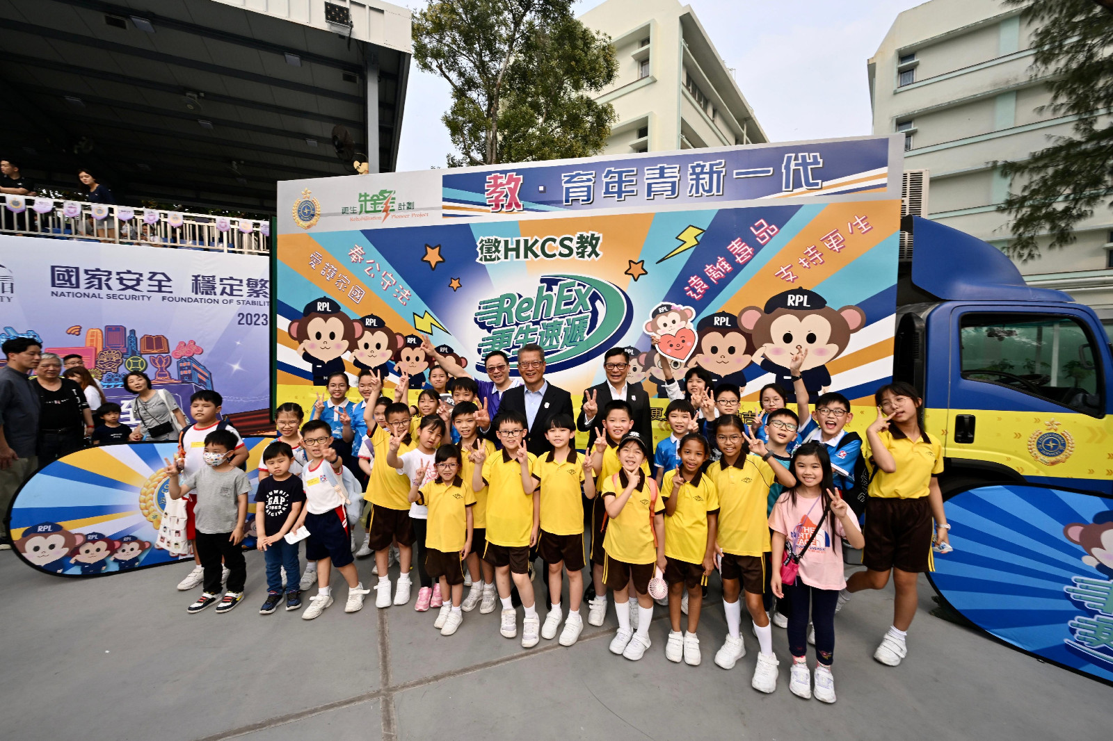 其後,陳茂波參觀「更生速遞」教育宣傳車,並與出席開放日的小朋友交談及觀看他們參與遊戲的情況。宣傳車每月到訪各區小學,透過車上的多個互動電子遊戲進行教育推廣,加強學生的國家安全意識和責任感及確立正確價值觀,教導他們成為一個愛護家國、奉公守法的好公民。