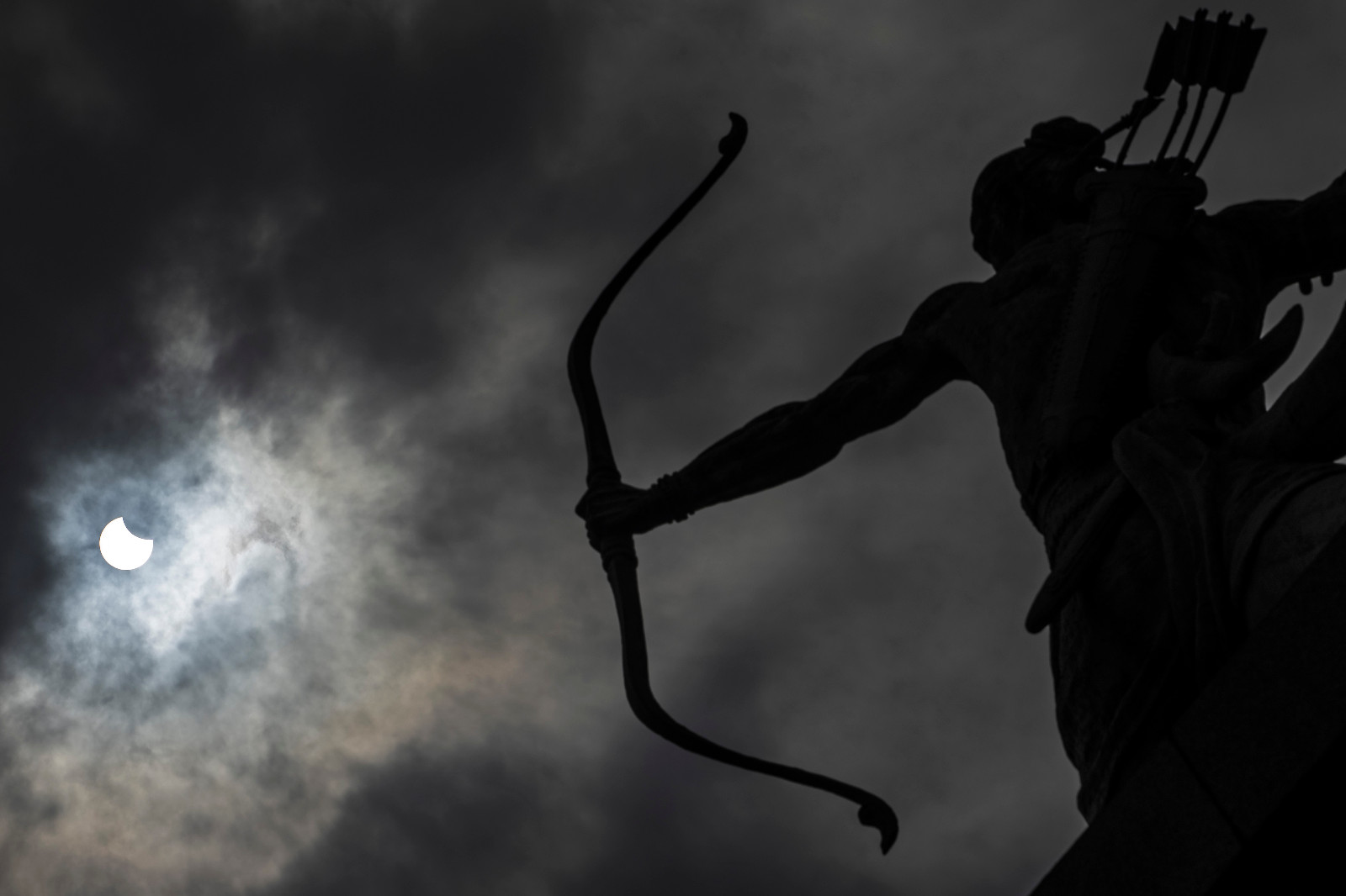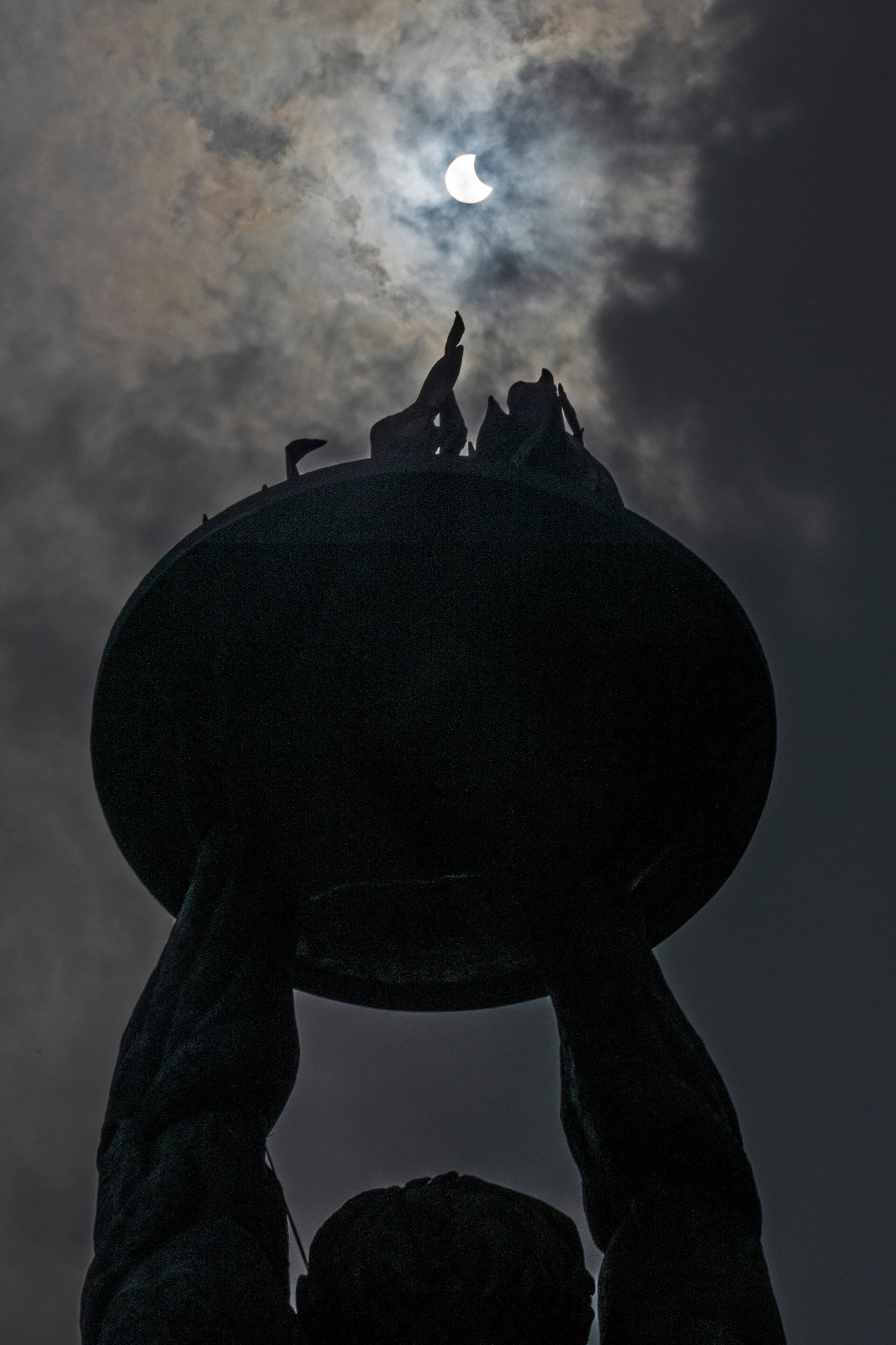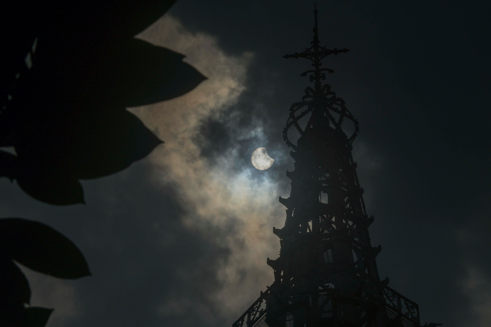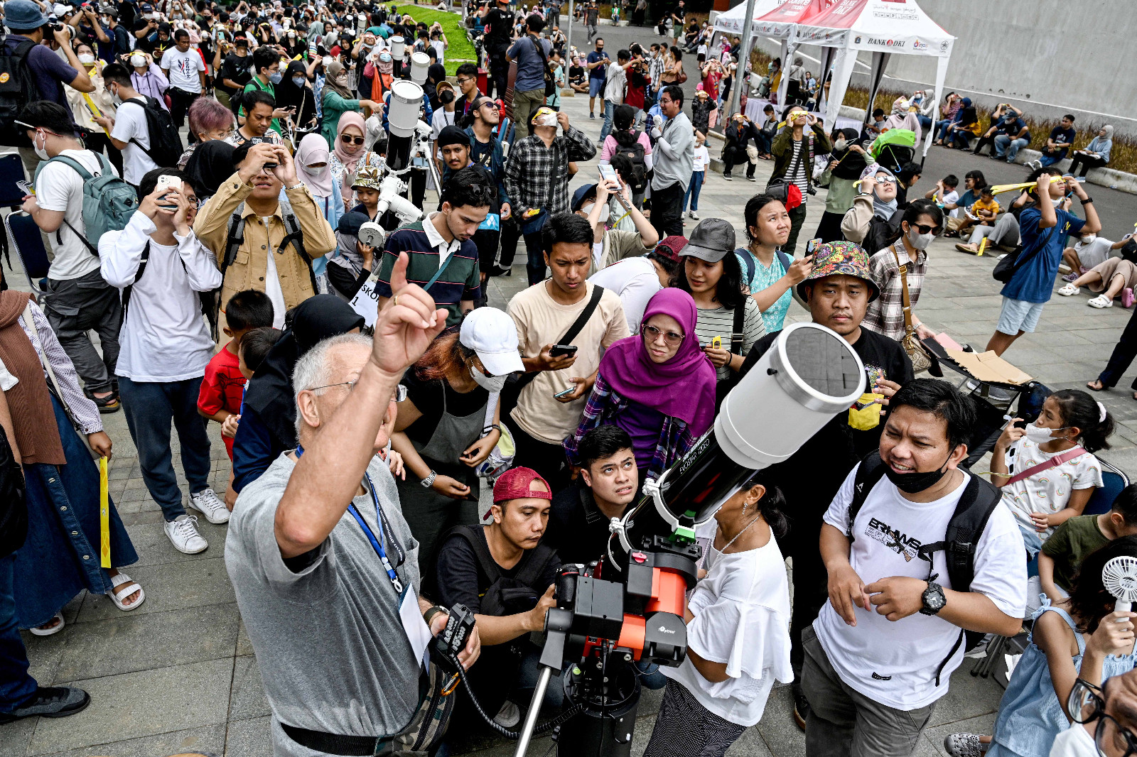 4月20日天宇上演一次比較特殊的日食——日全環食。同一次日食,如果一部分地區可見日全食,另一部分地區可見日環食,則稱日全環食,又稱「混合食」「複合食」,非常罕見。以21世紀為例,這100年中僅有7次日全環食發生。今年這次日食的食帶很窄,在食帶內兩端會發生日環食,在中間是日全食。日食帶從印度洋南部開始,經過澳大利亞的埃克斯茅斯、東帝汶東南部,印度尼西亞的巴布亞省,在太平洋西部結束。圖為 4月20日,日食出現在印度尼西亞雅加達上空。(圖源:新華社發 維里攝)
