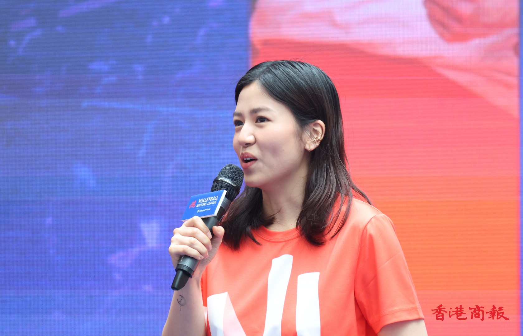 今日記招同時邀得人氣影星楊偲泳到場,她亦是排球好手,現時正效力本地丙組球隊飛魂。楊偲泳表示自己一直是中國女排的粉絲,非常榮幸可與偶像惠若琪近距離接觸,以及交流排球心得,並十分期待這次香港站賽事。(文、圖:志誠)