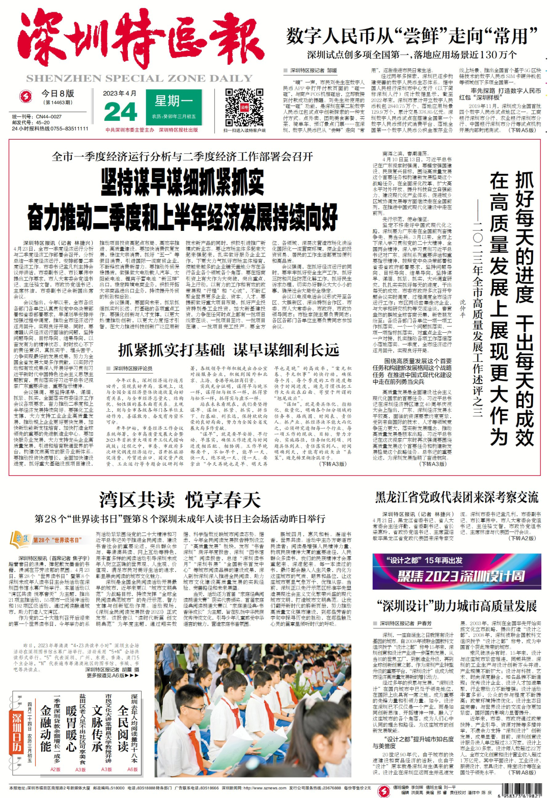 堅定不移走好中國式現代化之路,深圳要為廣東走在全國前列奮楫爭先、勇當尖兵。3月以來,全市上下深入學習貫徹黨的二十大精神、全國兩會精神,深入學習貫徹習近平總書記對廣東、深圳系列重要講話和重要指示精神,按照黨中央決策部署和省委省政府部署要求,堅持問題導向、目標導向、結果導向,堅持謀早、謀細、抓緊、抓實,大興調查研究,紮紮實實抓好每天的進度,幹出每天的成效。市委市政府多次召開專題會議實時調度、過程調度全市經濟運行工作;市區兩級密集走訪企業,與大學和研究機構等交流洽談,春意盎然的鵬城全球客商雲集,新老朋友紛至;各級各部門各單位一項一項工作抓落實、一個一個問題抓落實、一項一項指標抓落實,對重點企業一戶一戶對接,紮實推動各項工作落細落小落地落實。一季度,全市經濟運行逐月回升,實現良好開局。