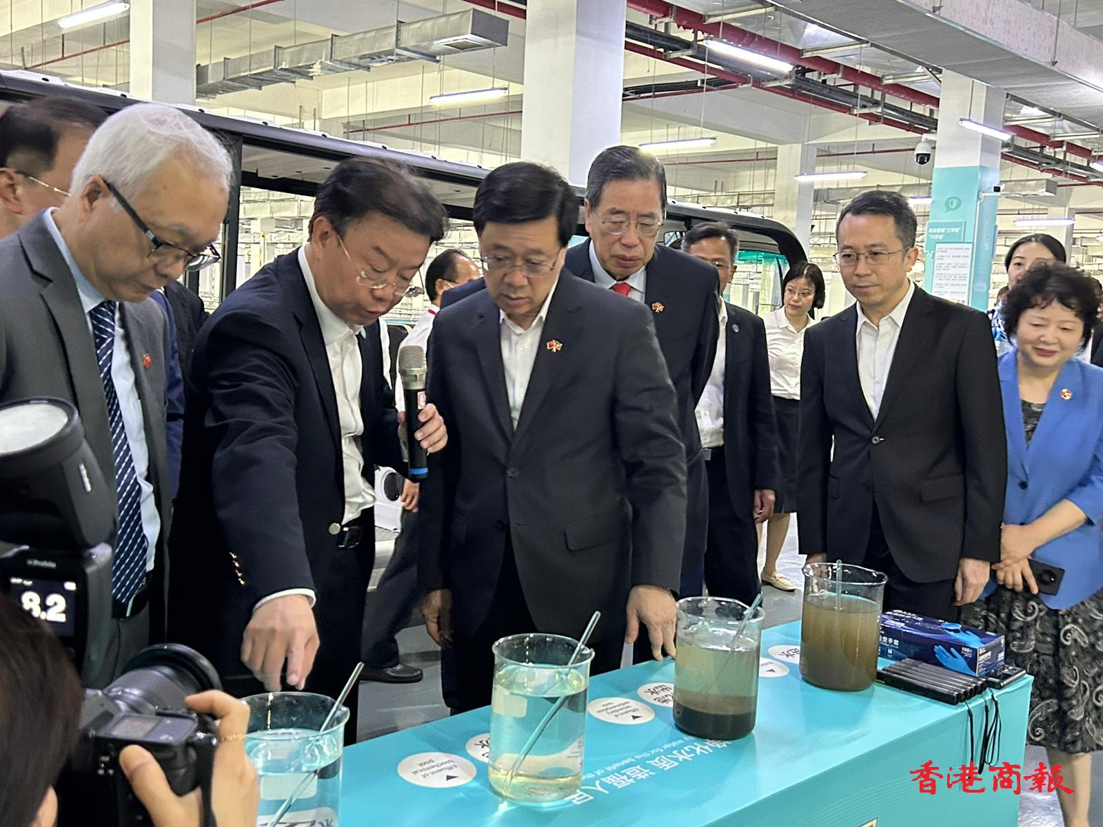 由李家超及政務司司長陳國基帶領的兩組考察團,今日上午分別由東莞及佛山轉抵廣州。全體考察團成員先到訪廣州瀝滘淨水廠會合,參觀淨水廠設施,了解廣州市以生態化地埋式淨水廠處理污水的工作。