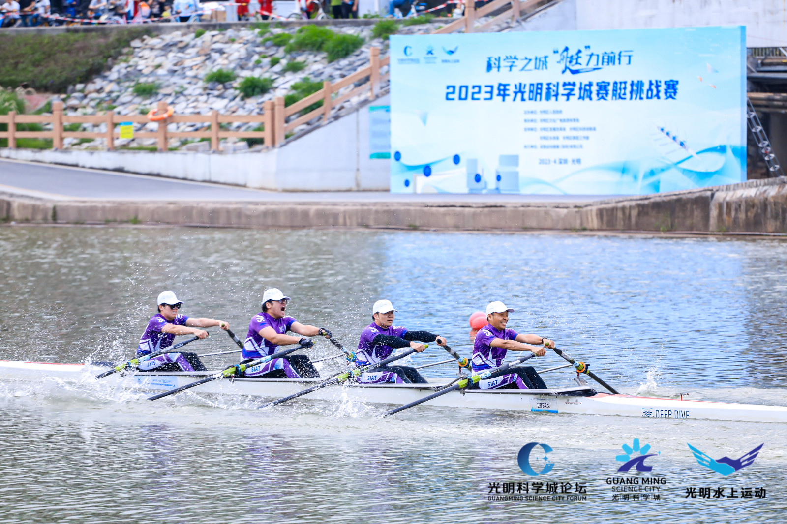 4月27日,由深圳市光明區人民政府主辦,光明區文化廣電旅遊體育局承辦的2023年光明科學城賽艇挑戰賽在光明水上運動中心(茅洲河光明段南光綠境)圓滿完賽。本屆賽事為四人雙槳800米競速賽,採取2輪積分預決賽制,以2輪積分總成績排名,錄取前8名進入最終決賽,以計時決出名次。