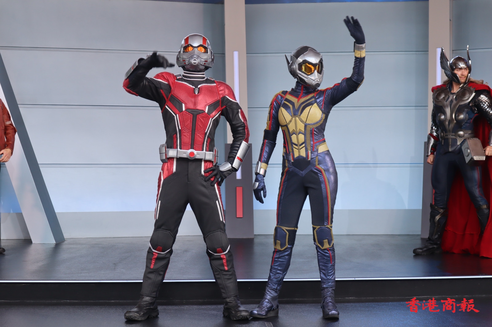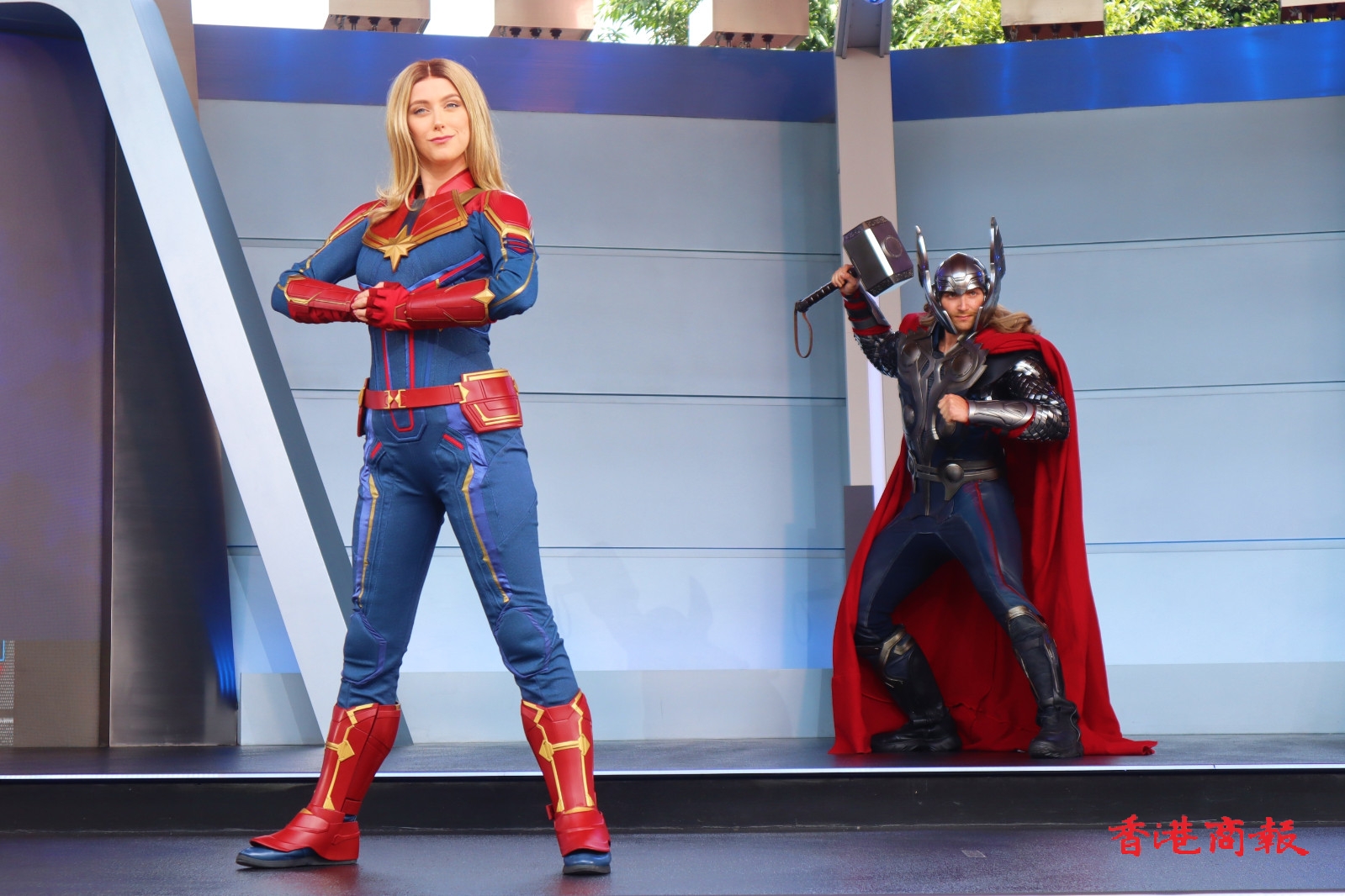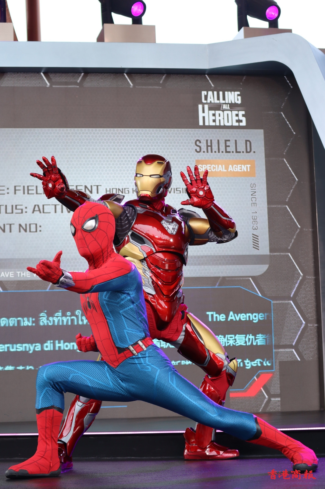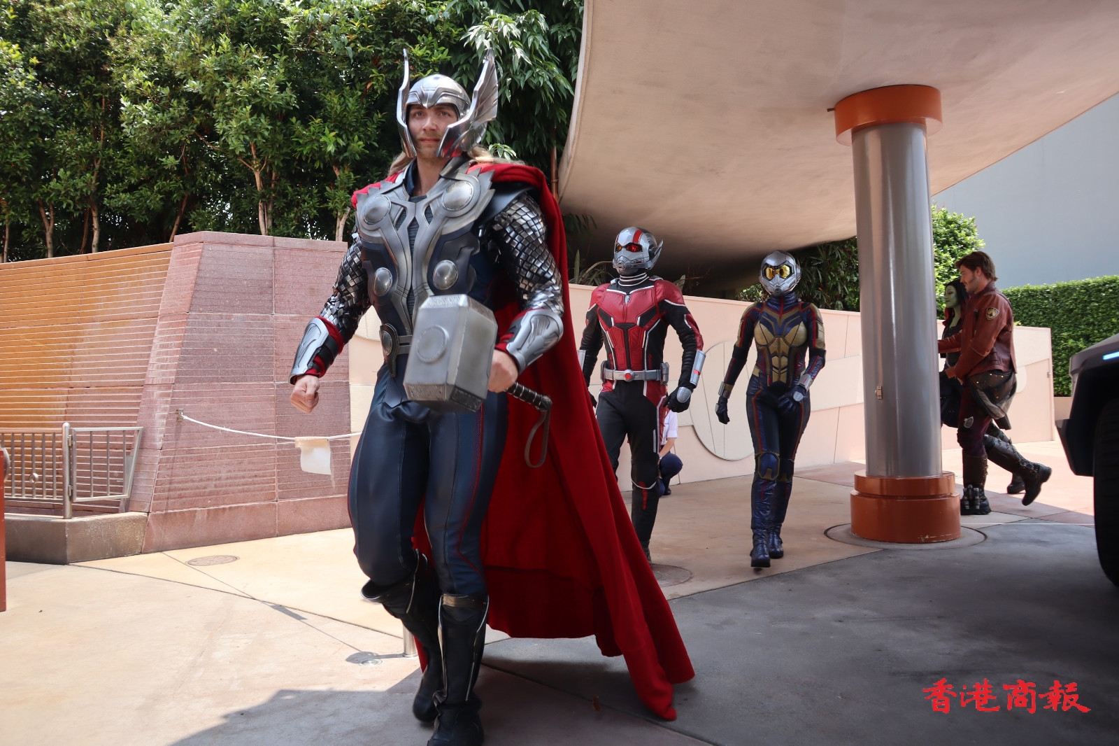 巡遊隊伍在「復仇者聯盟號」戰車的領航下,多位漫威超級英雄列陣登場,包括美國隊長、黑寡婦、雷神、蜘蛛俠、蟻俠、黃蜂女、驚奇隊長、星爵、嘉魔娜、 樹人等。此外,遊客可於科技展會合處領取英雄臂章,就可以未來英雄的身份與復仇者聯盟在巡遊中並肩前行,穿上最能突出自己英雄潛能造型的漫威迷,更有機會被現場鏡頭捕捉並投射至明日世界舞台的巨型LED屏幕。( 圖:馮瀚文攝 視頻:吳天恆)