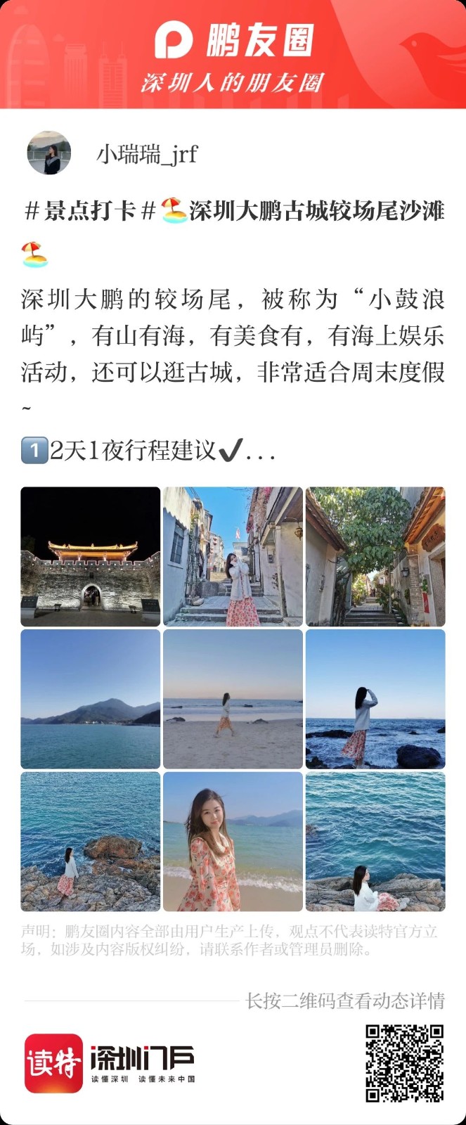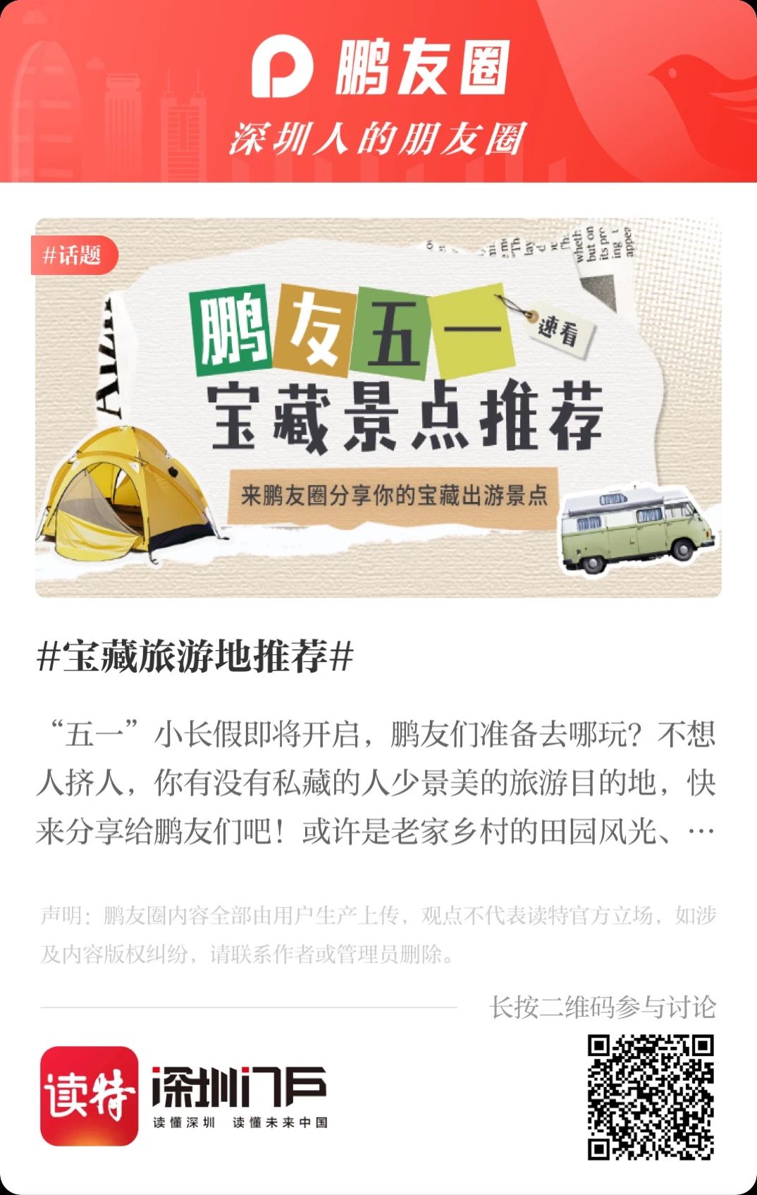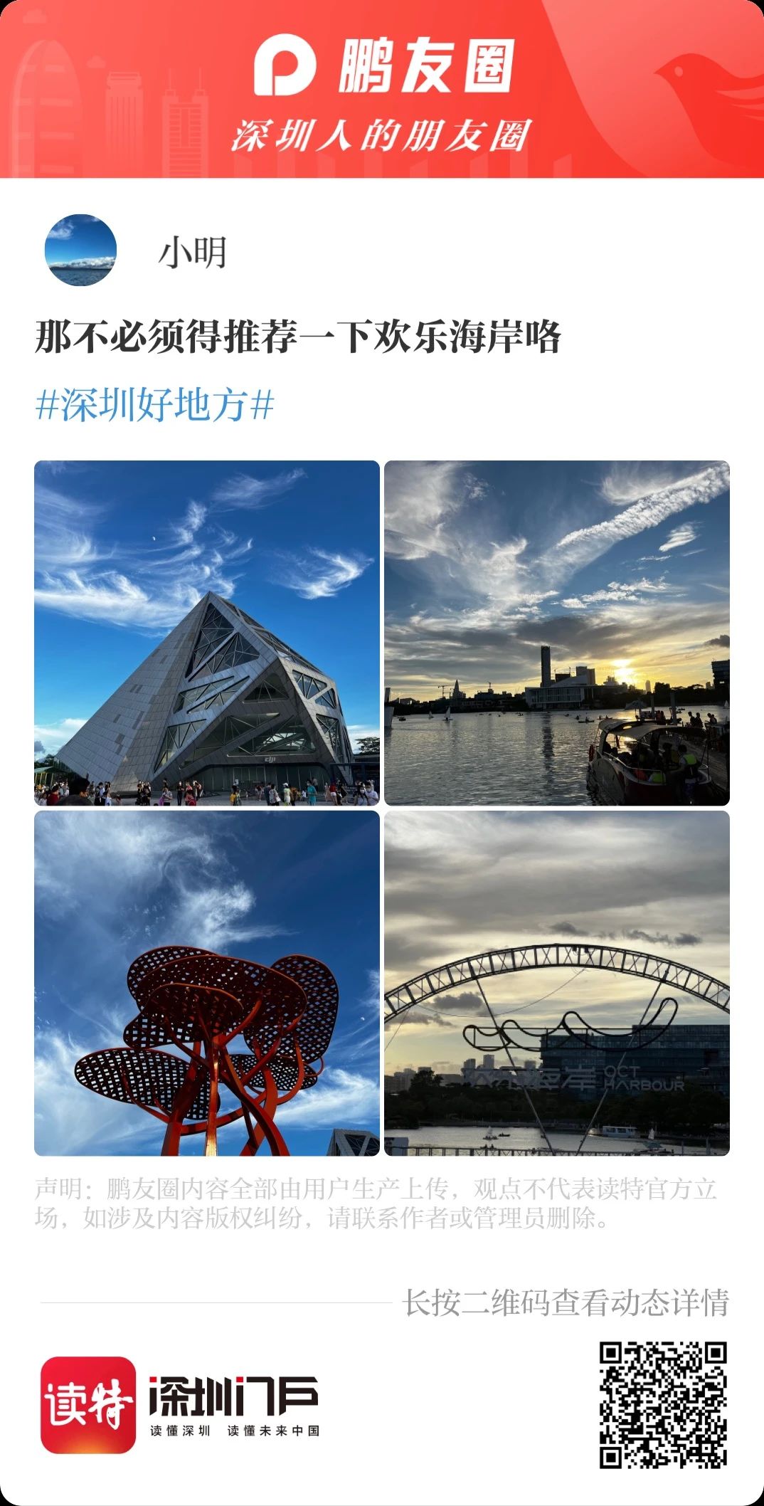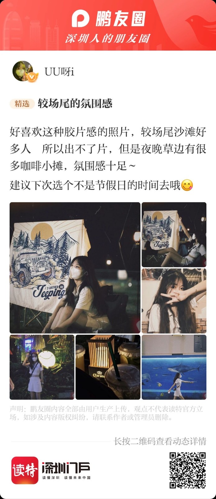 這都不能滿足你的話,小編就不得不拿出秘密武器——讀特鵬友圈話題活動:#寶藏旅遊地推薦# #到深圳,就來這兒#,這裏收集了很多深圳er私藏已久的寶藏地方,還有小夥伴們分享的深圳遊玩攻略!