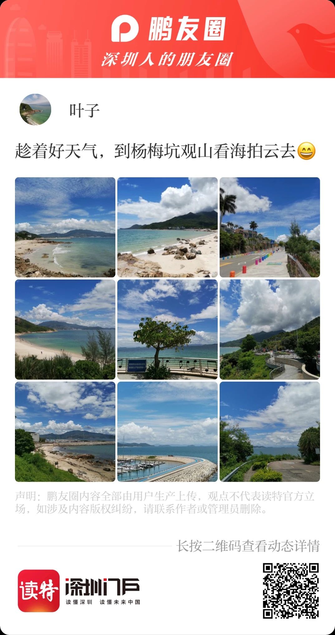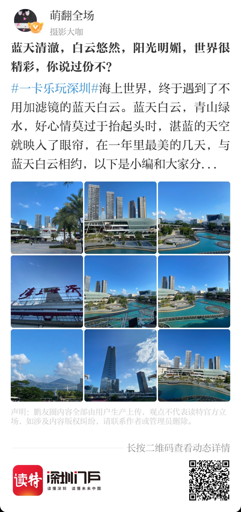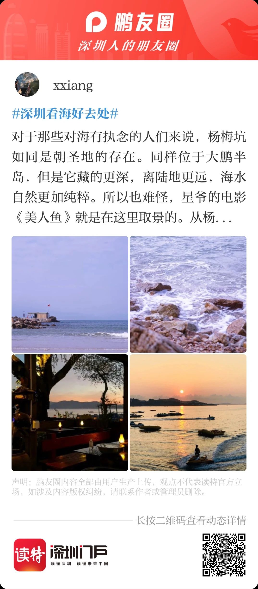 這都不能滿足你的話,小編就不得不拿出秘密武器——讀特鵬友圈話題活動:#寶藏旅遊地推薦# #到深圳,就來這兒#,這裏收集了很多深圳er私藏已久的寶藏地方,還有小夥伴們分享的深圳遊玩攻略!